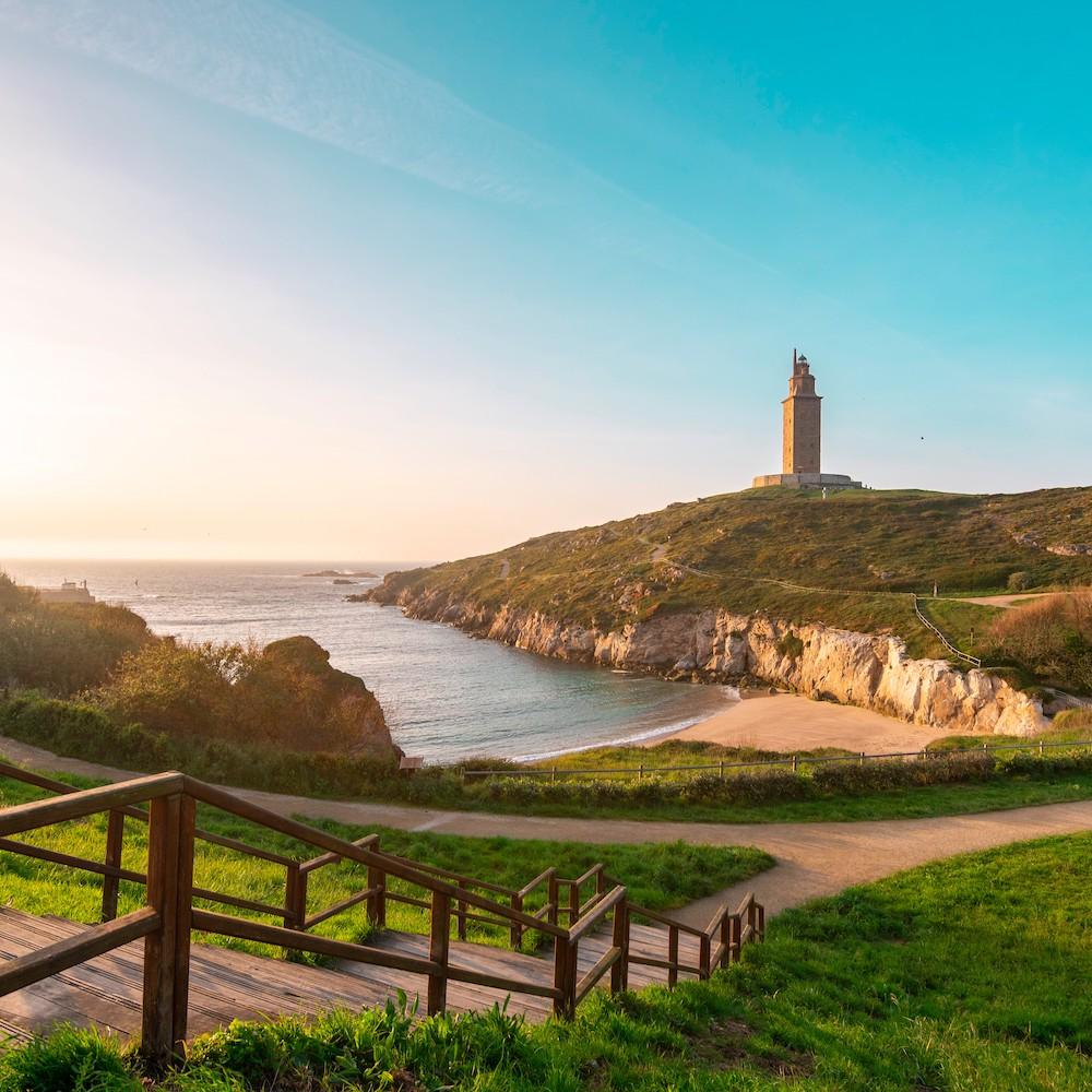 Vanuit Fisterra kan je beslissen om langs de kust verder te reizen naar A Coruña of je kan de kortste weg kiezen via de dorpjes Vimianzo en Carballo. A Coruña is perfect voor een weekend of een bezoek van één dag. Je kan er ontspannen op het strand van Riazor en wandelen door de stad. Al snel zal je de vuurtoren van Hercules fier zien oprijzen aan de kust. De zee is hier erg ruig wat zorgt voor een indrukwekkend spektakel waarbij de golven zich op de vuurtoren storten. Ook de stad zelf nodigt uit voor een uitstap. Je kan er een bezoek brengen aan de oude Iglesia de Santiago of kuieren op het Praza María Pita. Op een regenachtige dag kan je er terecht in één van de vele musea. Van het Wetenschapsmuseum en het Archeologisch museum tot het Zeeaquarium waar je de nagebouwde duikboot van Kapitein Nemo uit de roman van Jules Verne vindt. Er is voor elk wat wils. In het centrum van Coruña is het in de zomer erg druk, overnachten met de camper doe je dus beter in Puerto de San Pedro de Visma, het meest zuidelijke deel van de stad. Hier is het bovendien ook ideaal om te fietsen langs de Paseo Marítimo.