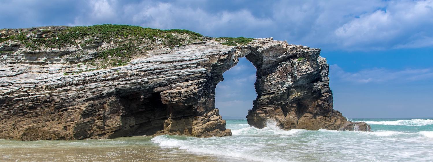 De laatste stop op deze roadtrip is Praia das Catedrais, het allermooiste strand in Noordwest Spanje. Grandioze rotsformaties vormen grote bogen en openingen die dit strand werkelijk spectaculair maken. Het doet ook denken aan een kathedraal, vandaar de naam ‘het strand van de kathedralen’. Je kan Praia das Catedrais bezoeken vanop het strand of vanaf de kliffen. Hou er wel rekening mee dat alleen bij eb het strand vrij ligt en je enkel dan door de rotsformaties kan wandelen. Vooral wanneer de avondzon een flauw licht werpt over de rotsen is dit een heel bijzondere belevenis. Ondanks dat er hier niet gezwommen mag worden in de zee, kan je hier gerust enkele dagen vertoeven. Kortom, dit is werkelijk de ideale afsluiter van een roadtrip langs de kust van Galicië.