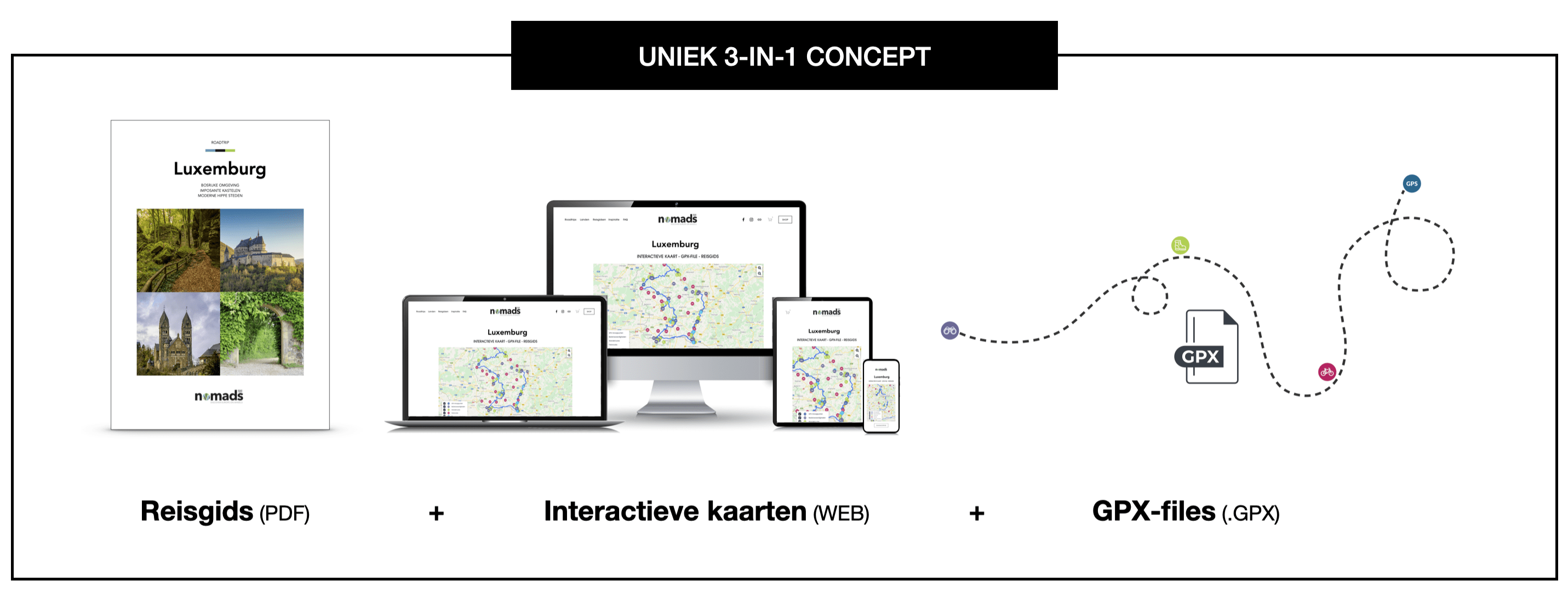 - Inclusief GPX-files zodat je de volledige route en alle fiets- en wandelroutes op je GPS kan downloaden