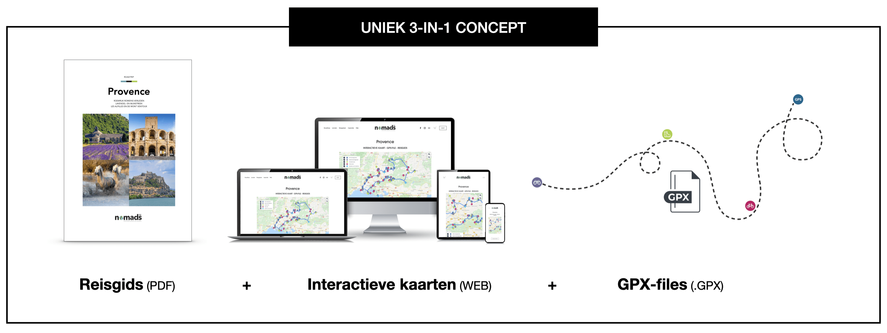 - Inclusief GPX-files zodat je de volledige route en alle fiets- en wandelroutes op je GPS kan downloaden