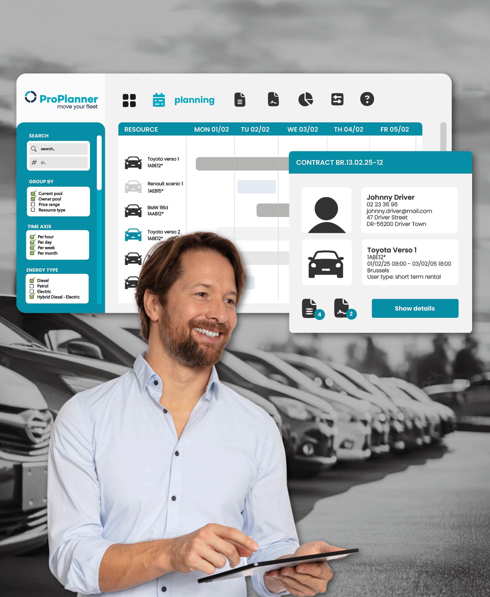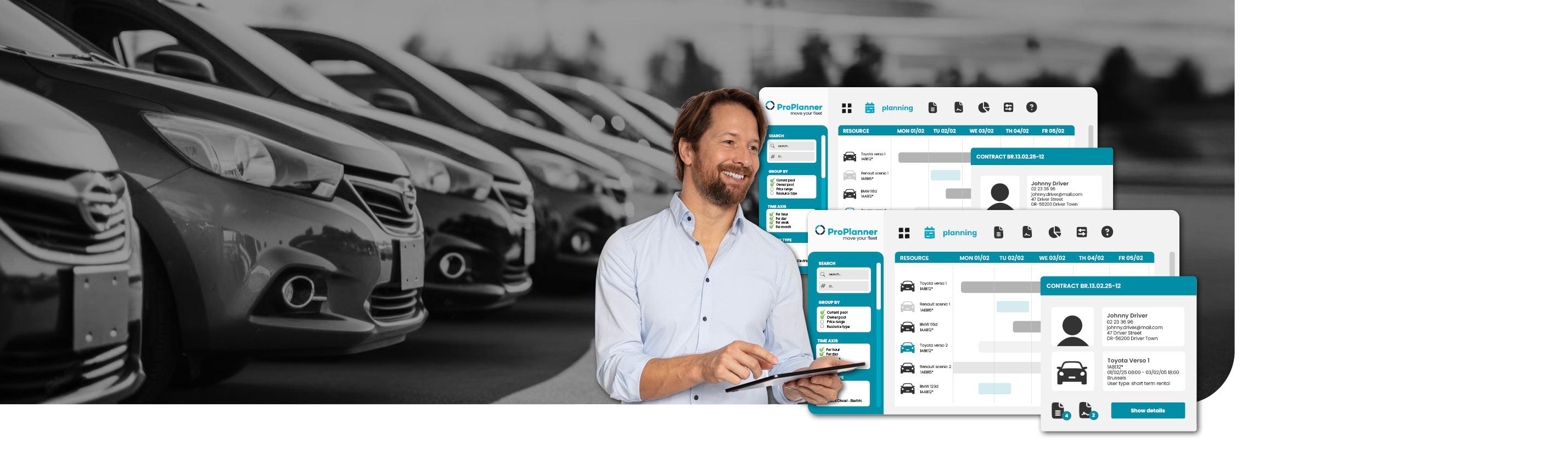 Use ProPlanner, our extremely user-friendly fleet software tool. It will help you as a car dealer or car rental company to manage the lending, renting out and deployment of vehicles and accessories in the most efficient way possible. This will save time and reduce costs.