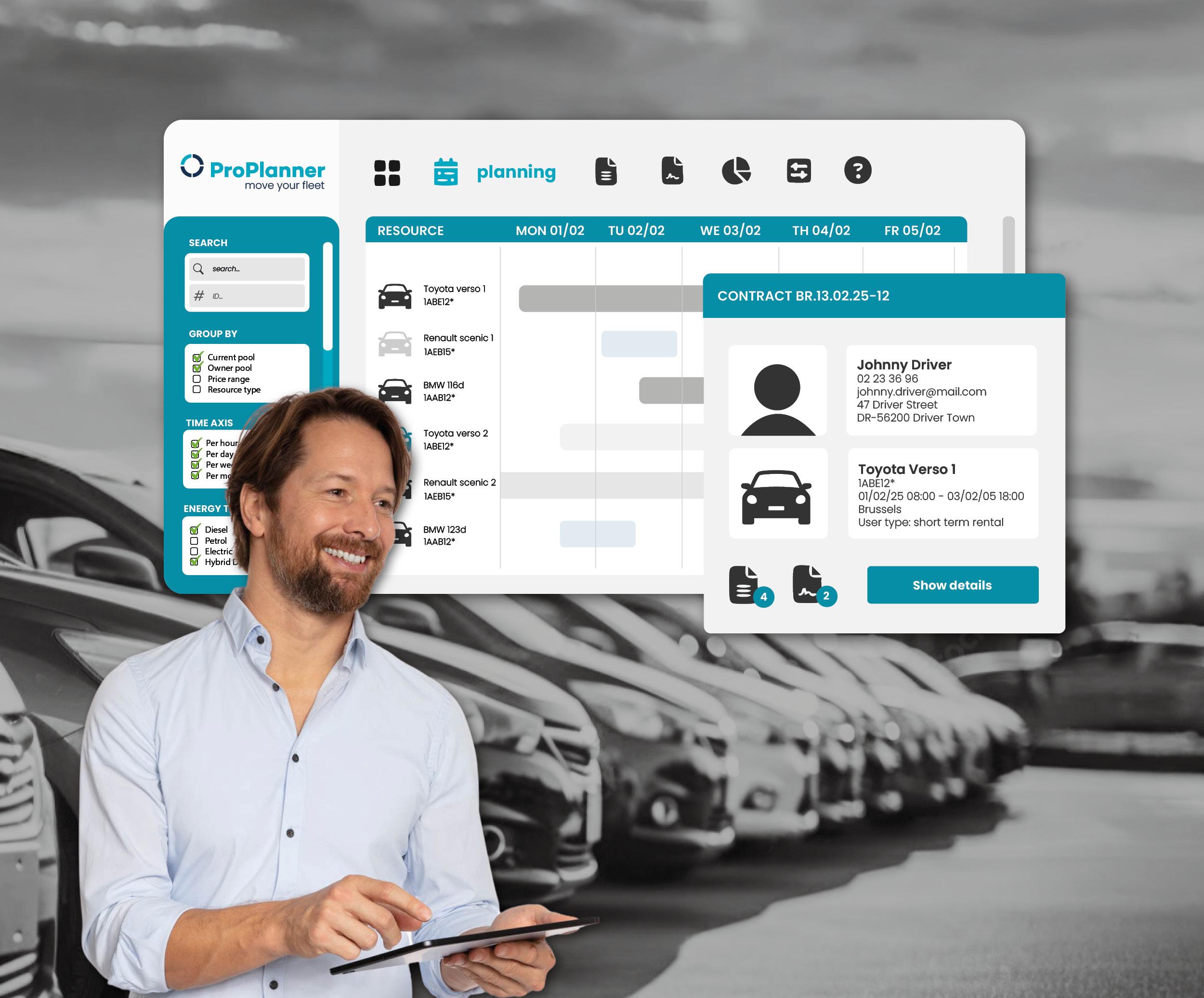 Of u nu fleetmanager, autodealer, autoverhuurder of carsharing aanbieder bent, ProPlanner biedt een schaalbare en volledig aanpasbare oplossing voor uw mobiliteitsbeheer.