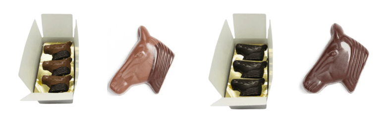 Maar we houden ook van lekkers en zijn verheugd u onze nieuwe actie te kunnen aanbieden. In samenwerking met chocolatier Tony Boeckaert uit Zulte bieden wij de gekende chocolade paardenkoppen aan.