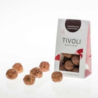 Kokosparels, met de hand gerold. Omhuld met (h)eerlijke fairtrade melkchocolade.