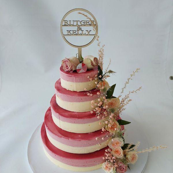 Kort voor jullie dag wordt alles vers gemaakt en wordt de huwelijksijstaart