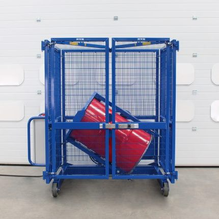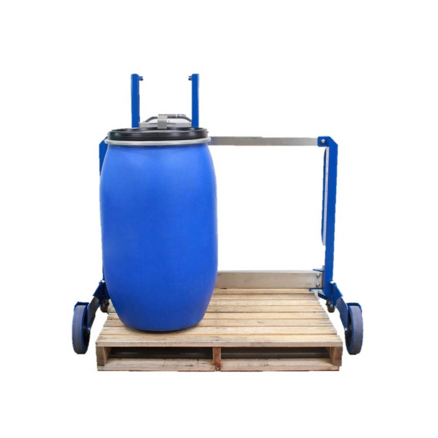 Outre les retourneurs de fûts, notre gamme comprend également un chariot de fûts ultra compact pour le transport de fûts sur le sol, un palettiseur de fûts ou un chariot de fûts pour soulever ou déposer des fûts lourds sur des palettes ou des plateaux d'égouttage, respectivement.