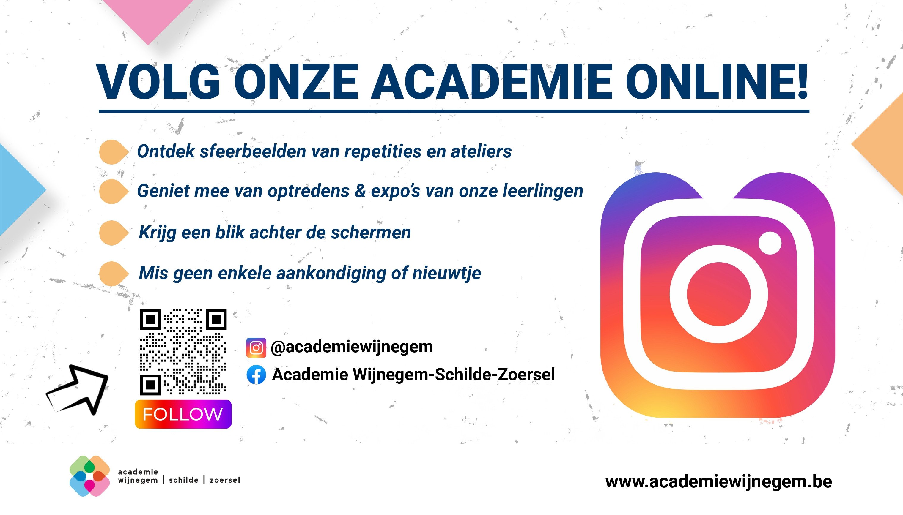 Onze academie biedt een heel uitgebreid aanbod voor alle leeftijden. Een instrument leren bespelen, schrijven, producen, toneel spelen, tekenen en schilderen, zingen, radio maken, dj’en, …, je kan met al je creativiteit bij ons terecht.