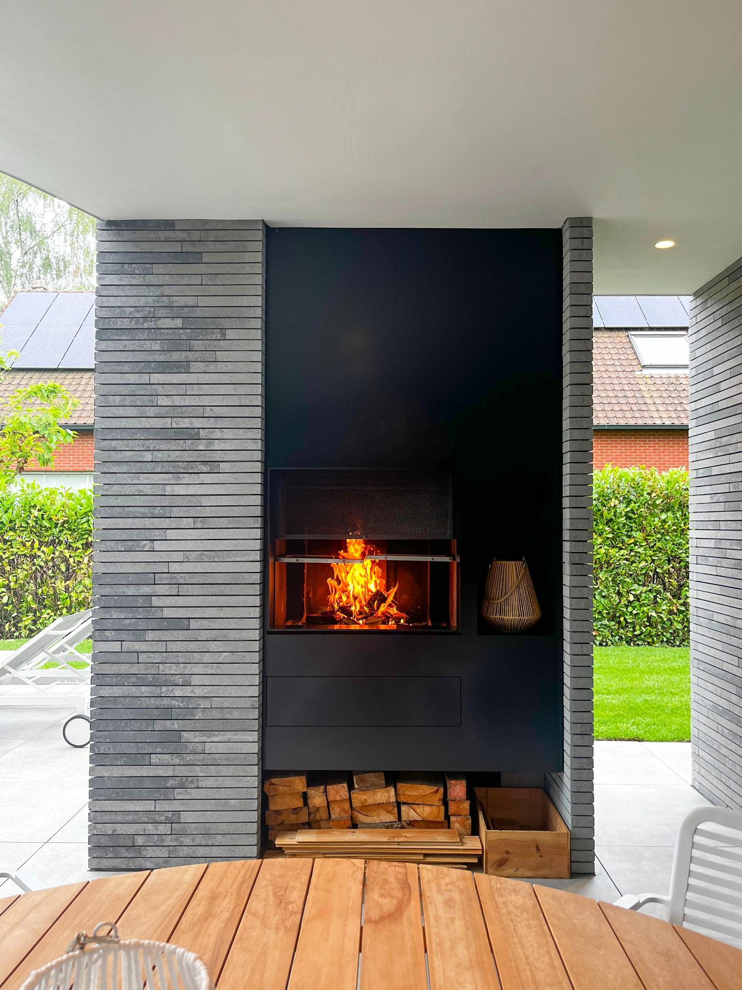 Een open haard buiten inbouwen is nu echt wel dè trend.