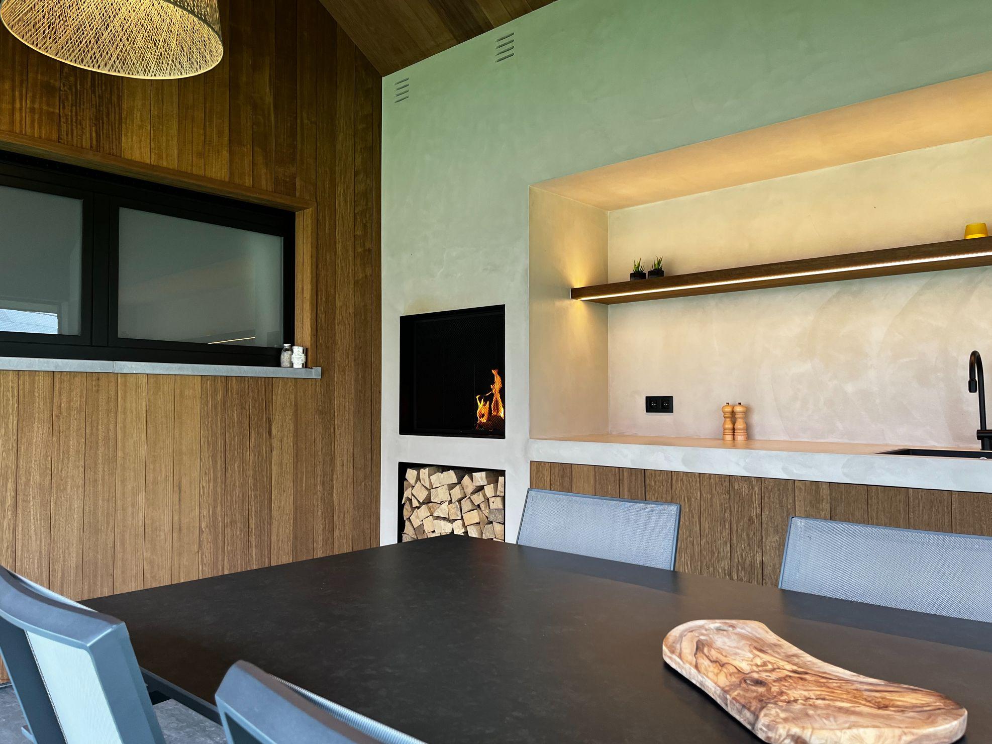 Hiernaast een vuurhaard BBQ (vuurhaard buiten gas ook mogelijk)