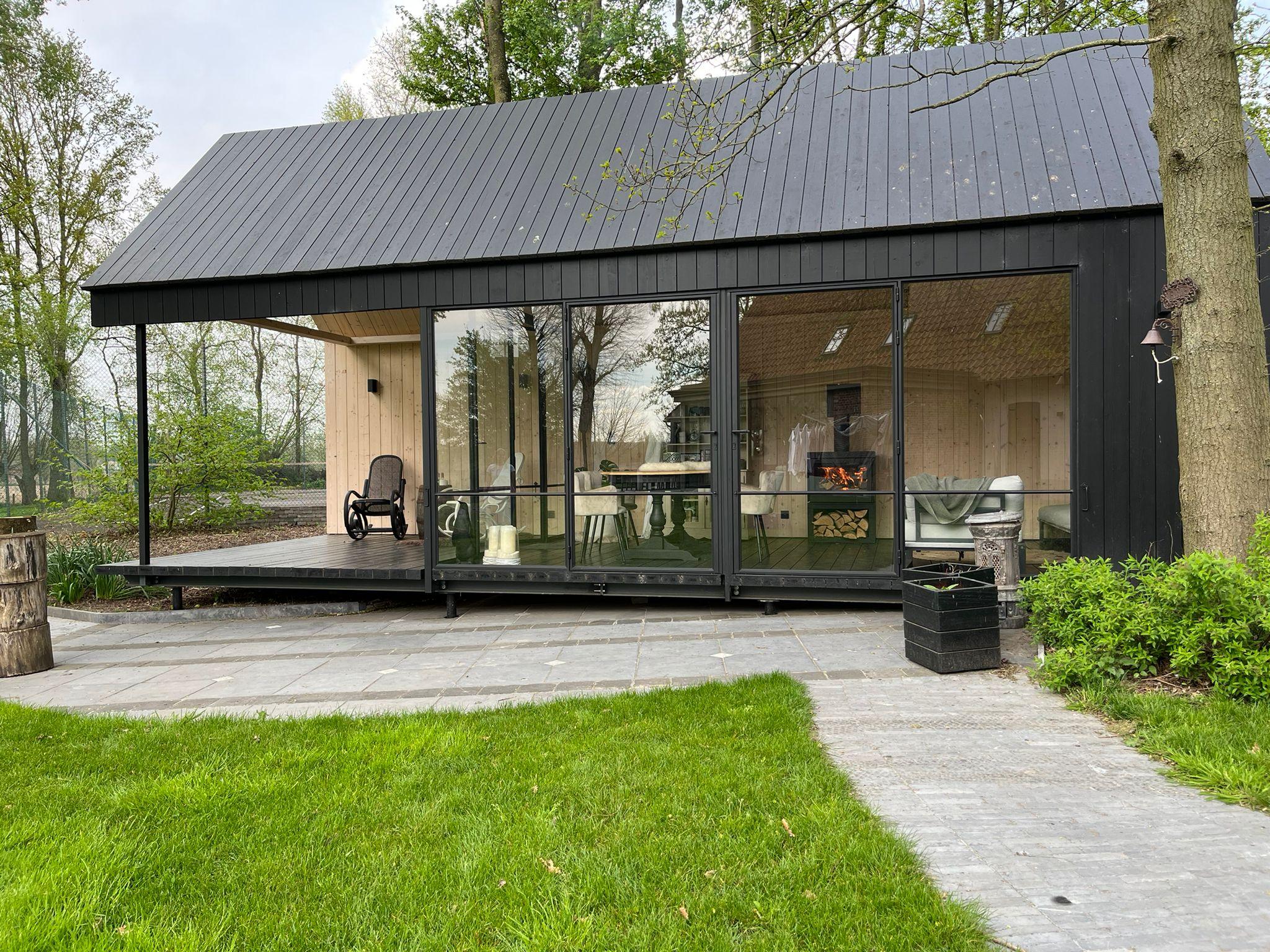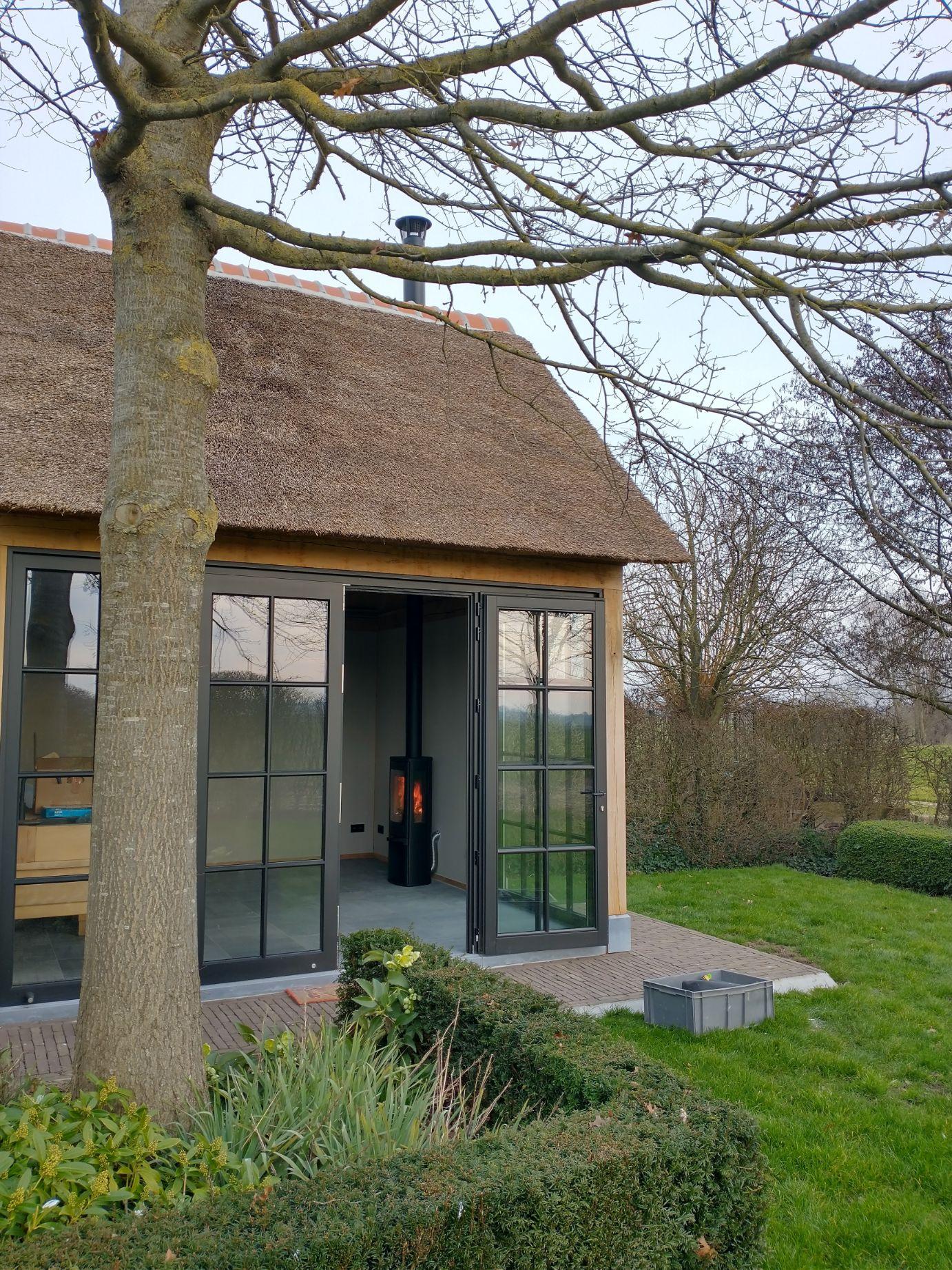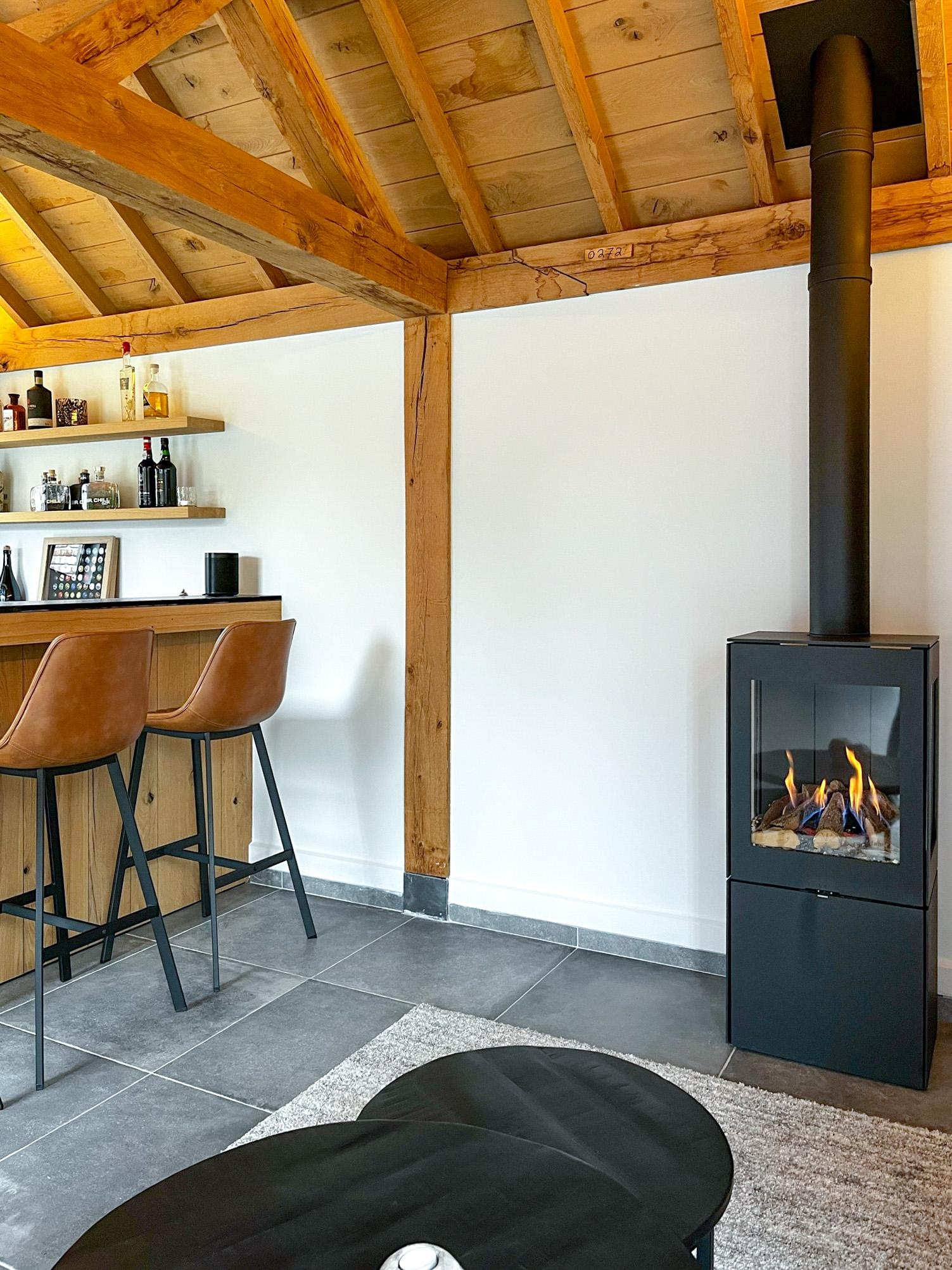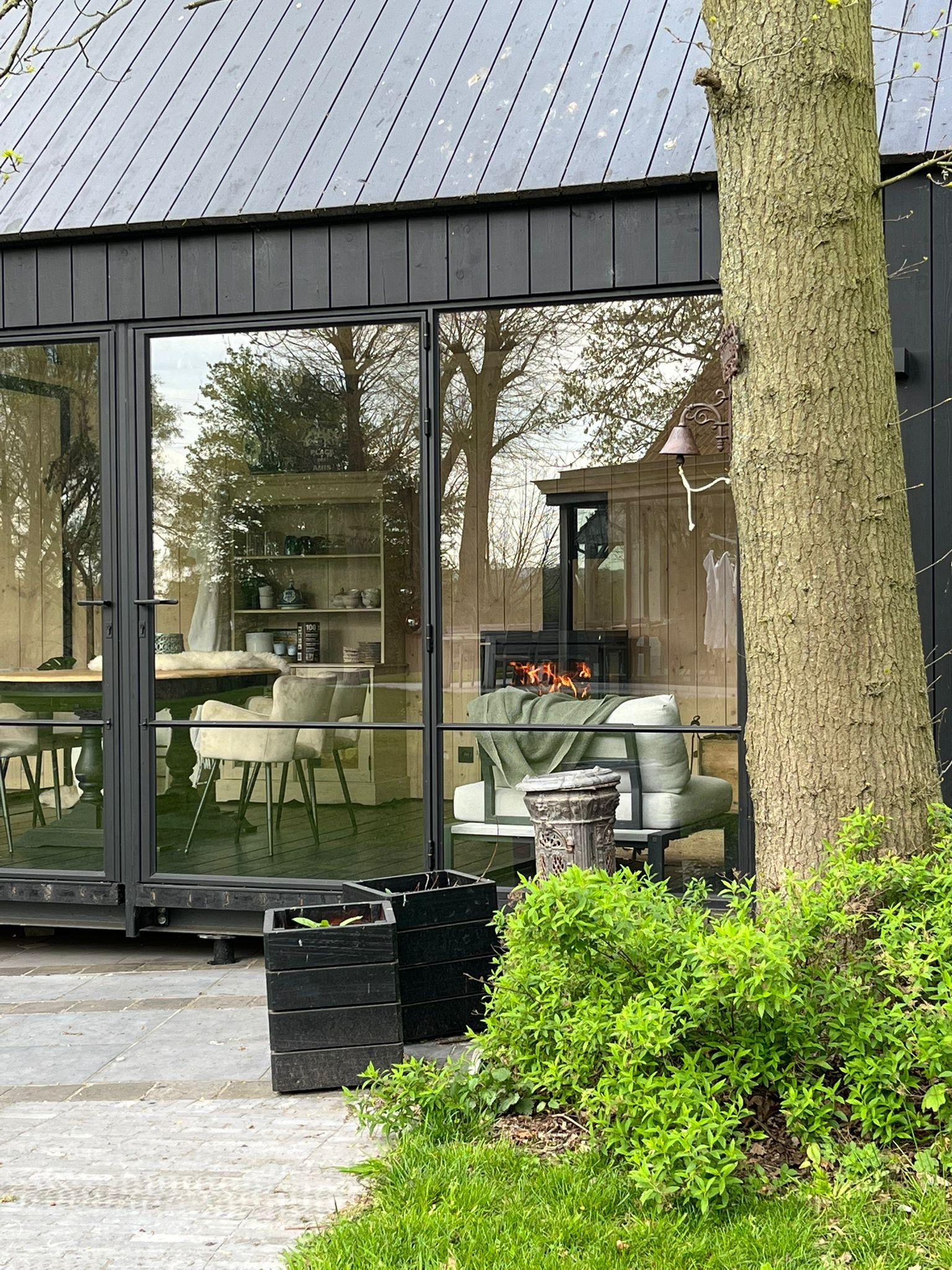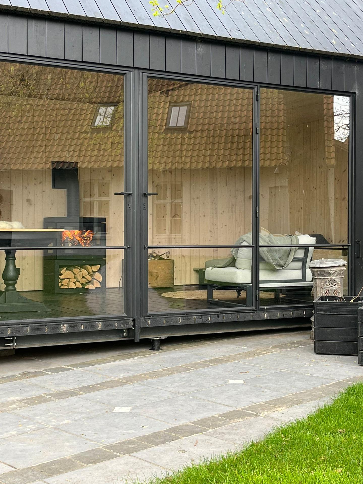 Niet enkel sfeerhaarden buiten, ook in de tuinkamers worden de tuinhaarden geplaatst.