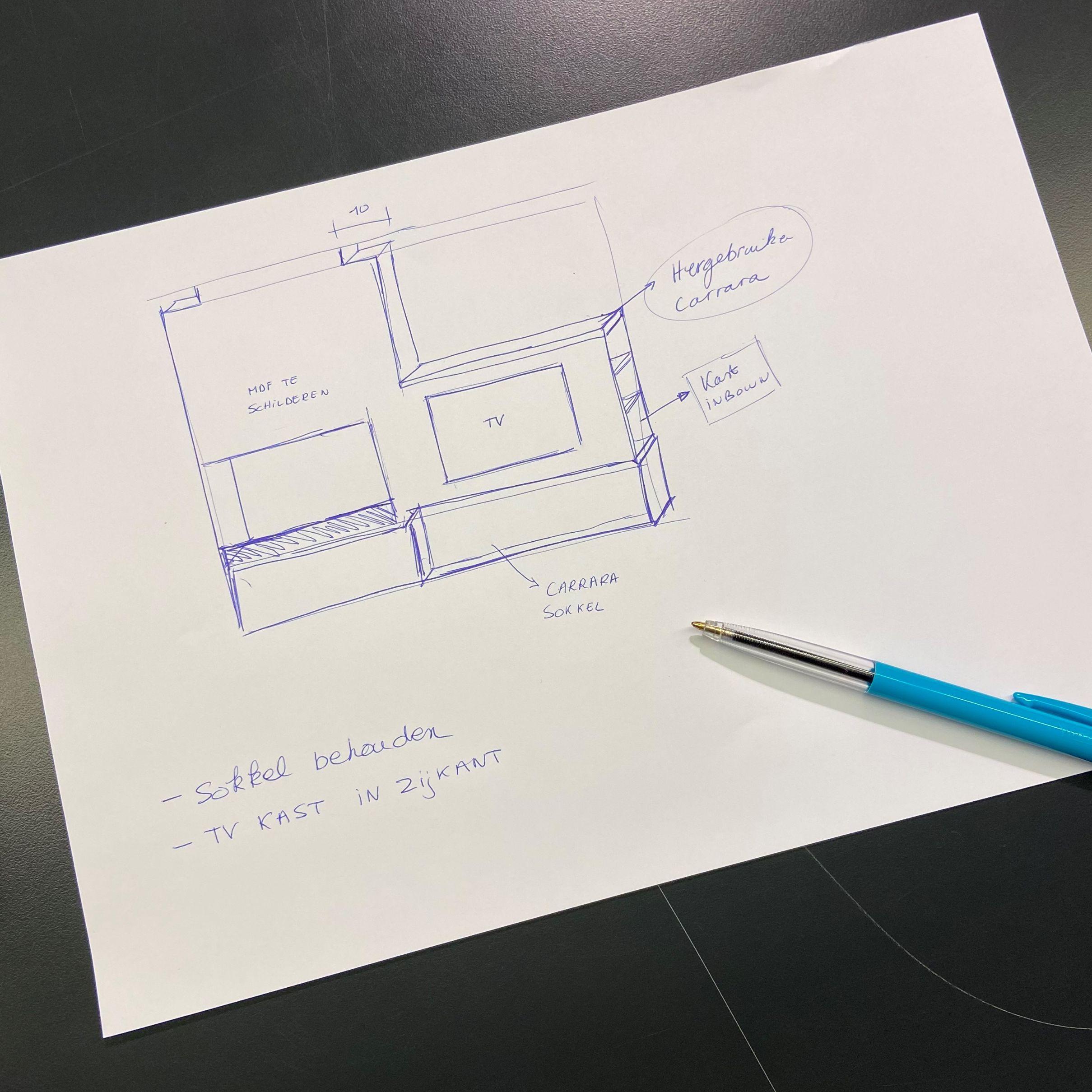 Eenmaal de keuze van de haard is gemaakt kunnen we aan de slag om de opbouw rond de haard te schetsen.