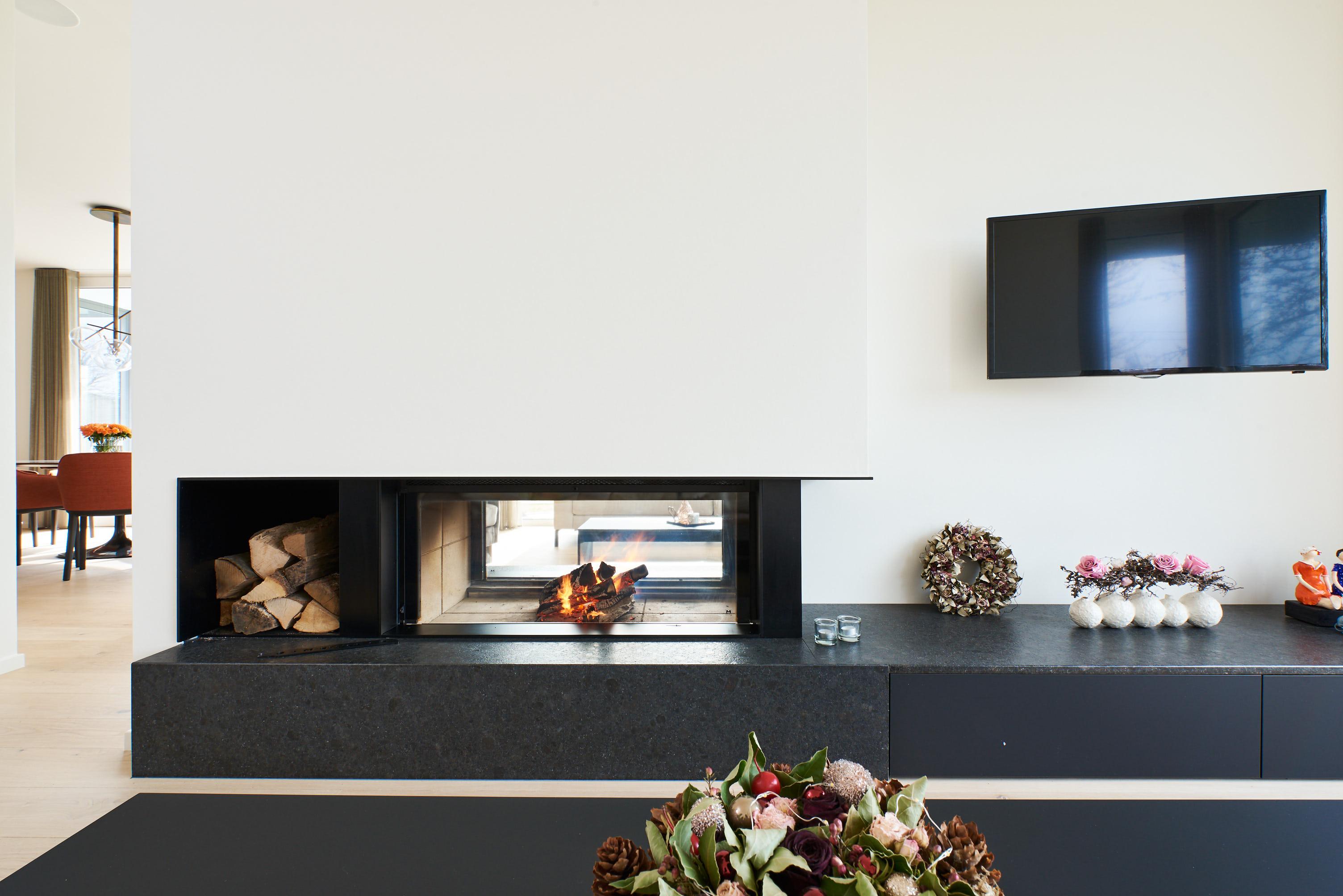 Een doorkijkhaard, ook vaak tunnelhaard genoemd, is een absolute blikvanger in jouw woonkamer, keuken of horecazaak. Omdat dit type haard geïntegreerd zit in een scheidingsmuur, met glas aan beide kanten, zie je de ruimte aan de andere kant van de muur, vandaar de naam doorkijk kachel. Het verheft het haardvuur tot een designelement binnen jouw interieur. Een doorkijk openhaard komt dan ook helemaal tot zijn recht in grotere ruimtes.