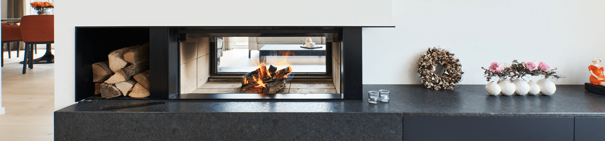 Een doorkijkhaard, ook vaak tunnelhaard genoemd, is een absolute blikvanger in jouw woonkamer, keuken of horecazaak. Omdat dit type haard geïntegreerd zit in een scheidingsmuur, met glas aan beide kanten, zie je de ruimte aan de andere kant van de muur, vandaar de naam doorkijk kachel. Het verheft het haardvuur tot een designelement binnen jouw interieur. Een doorkijk openhaard komt dan ook helemaal tot zijn recht in grotere ruimtes.
