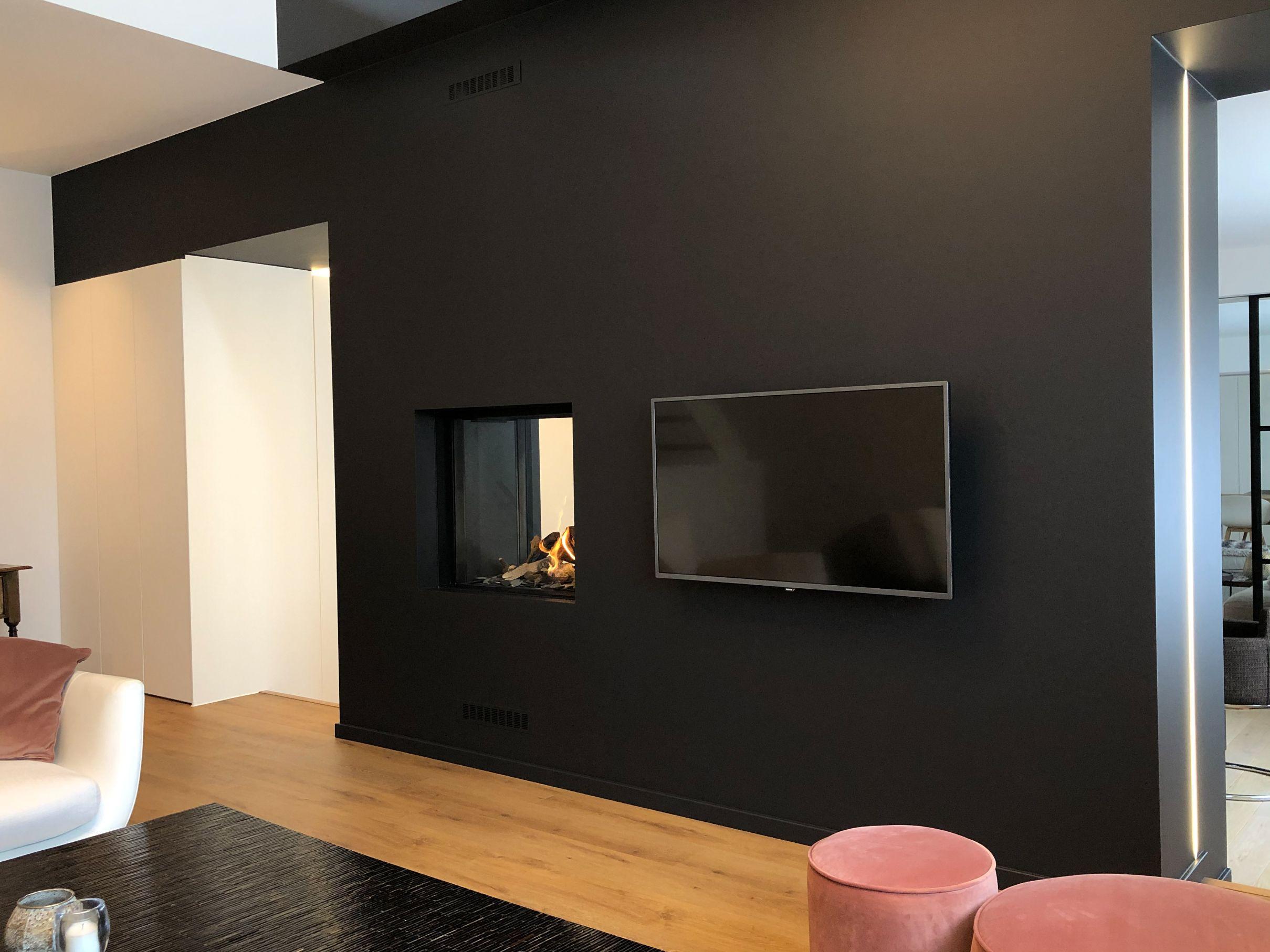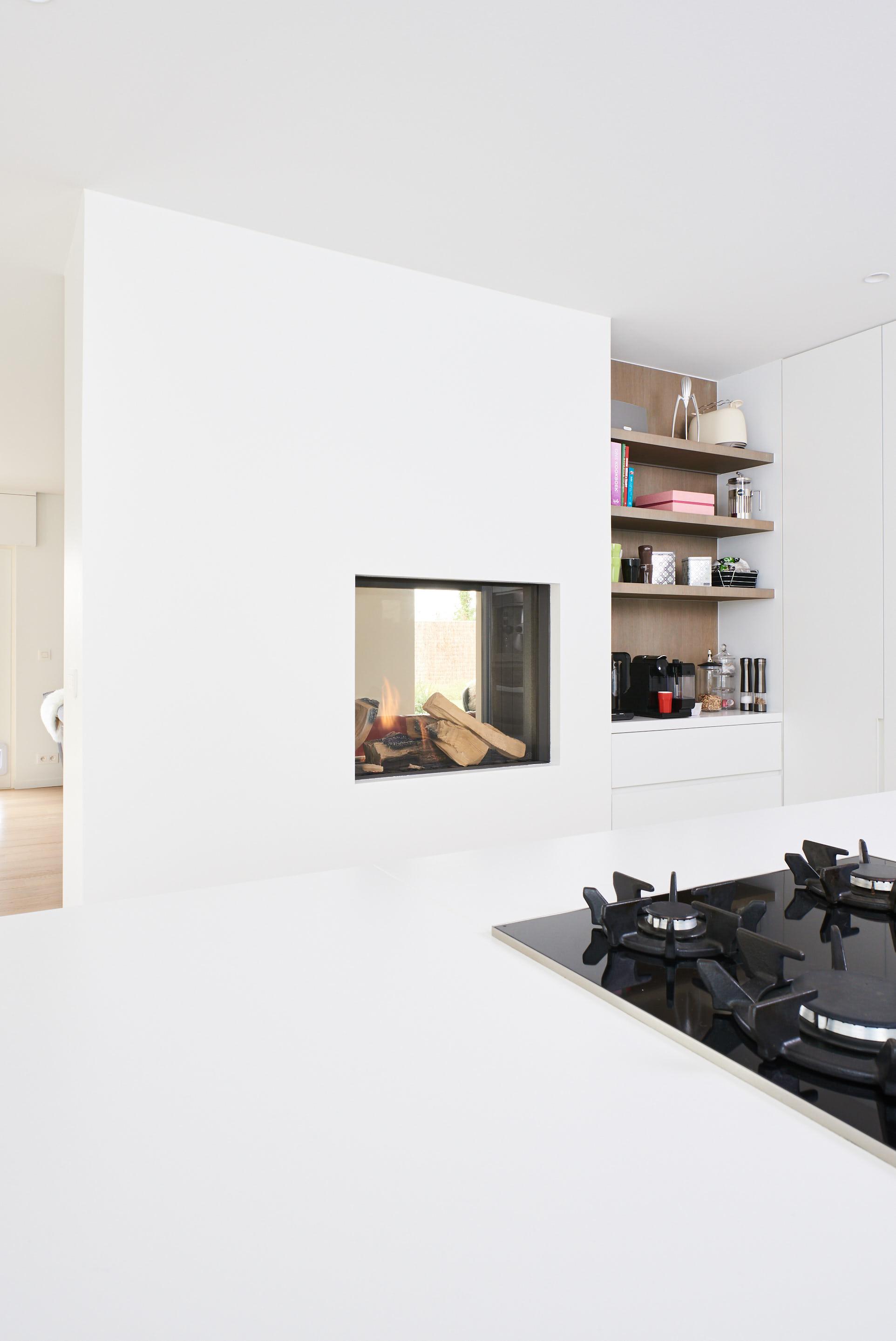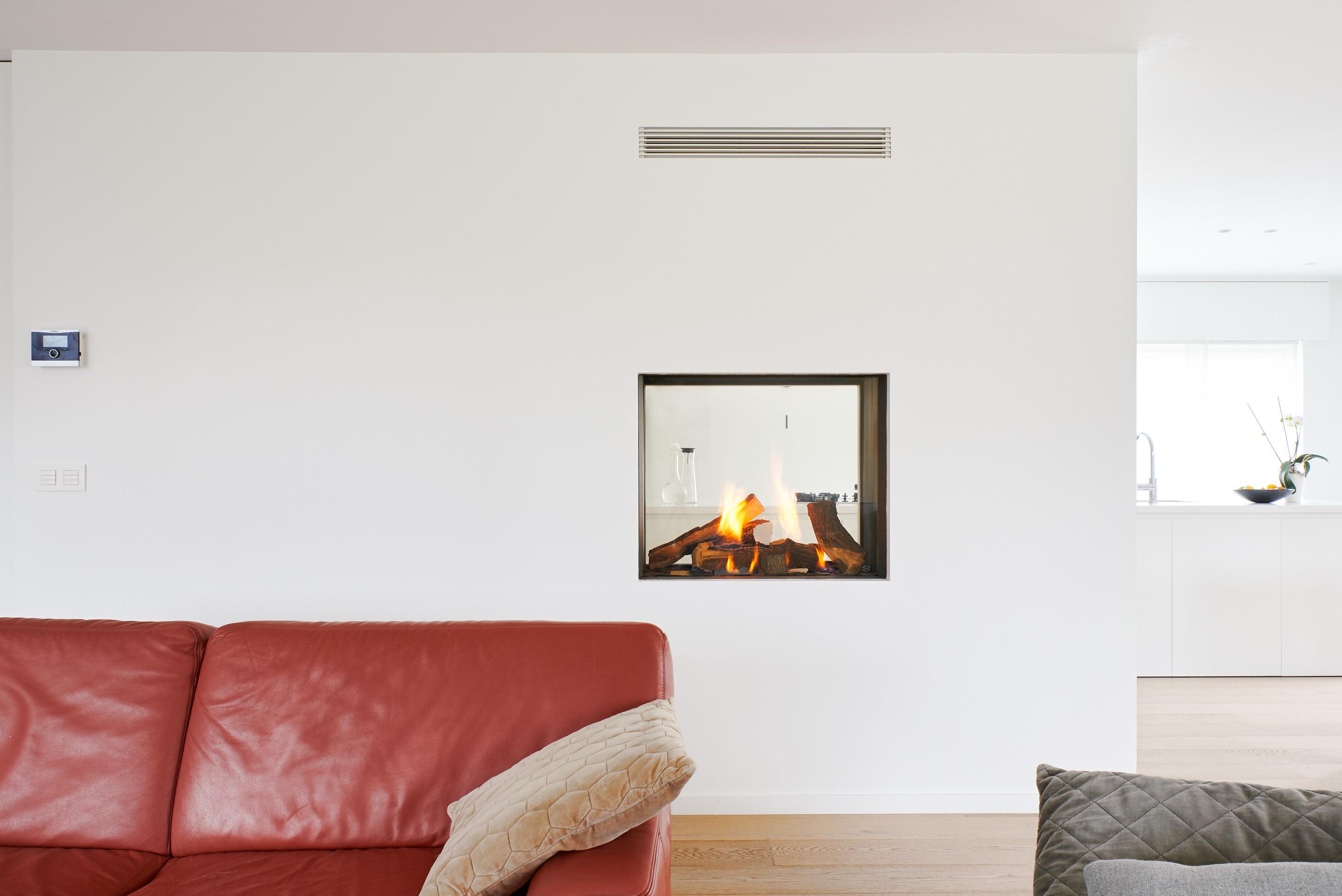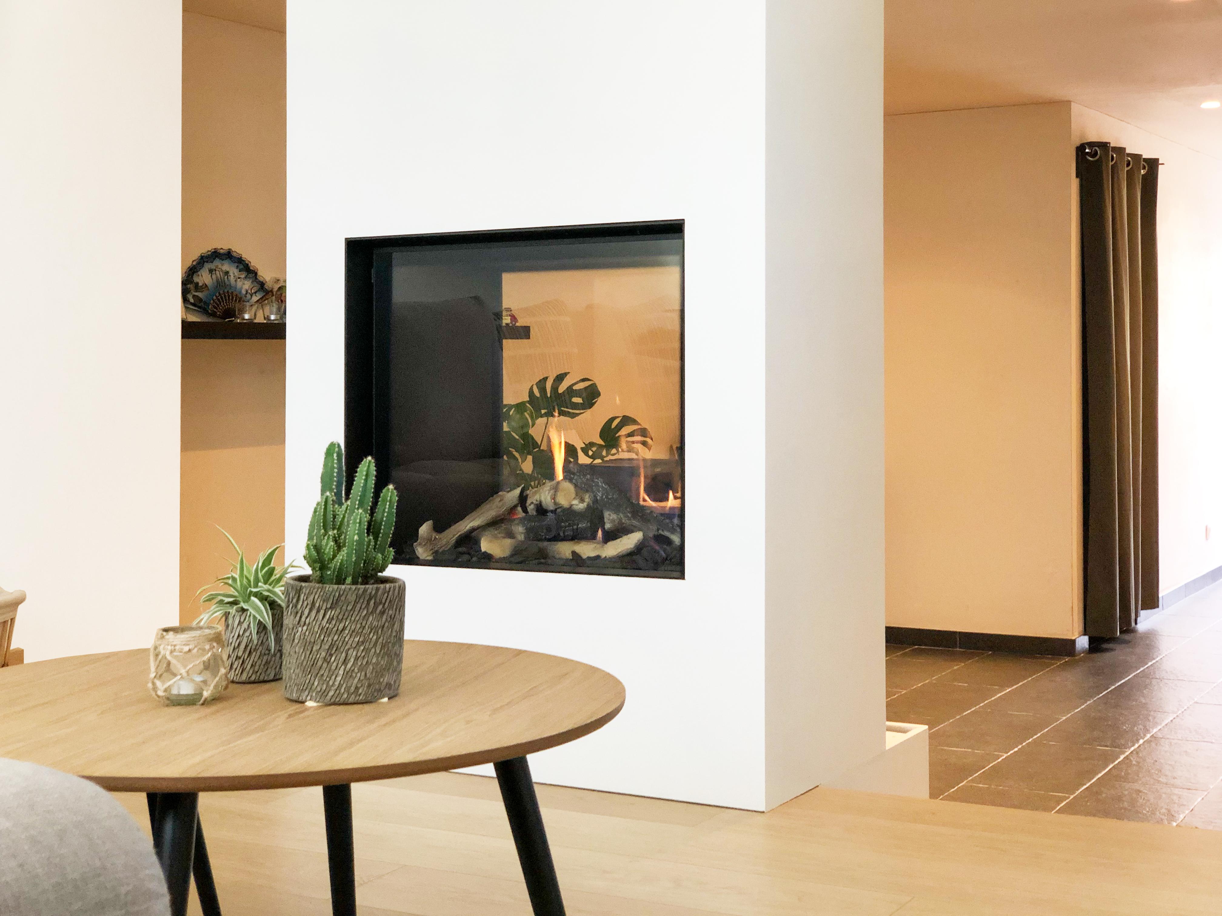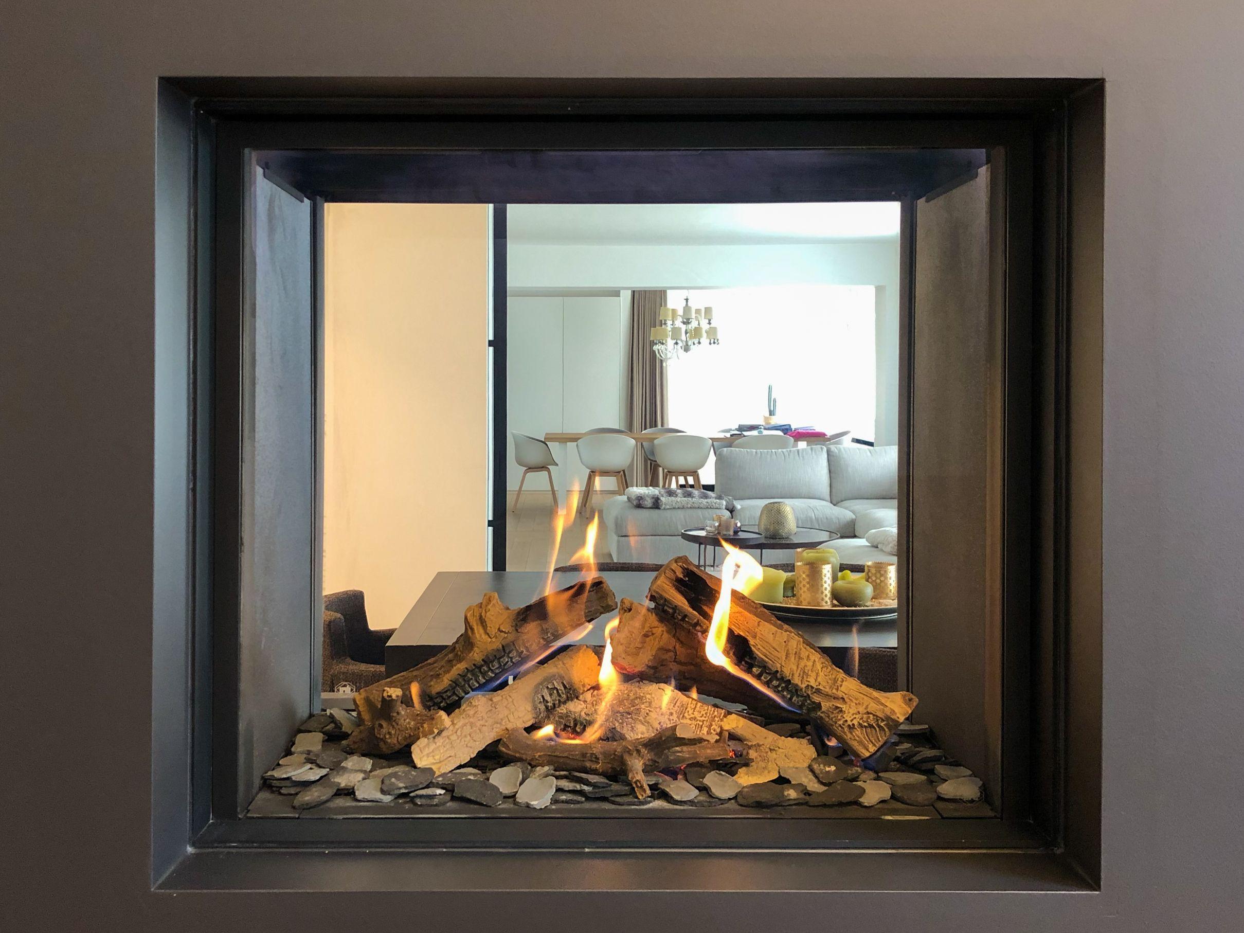 Daarnaast heb je de mogelijkheid om die zuiver in glas te installeren, en dit eventueel met inspringing. Kortom: wij bouwen een doorkijkhaard volledig op maat van jouw interieur.
