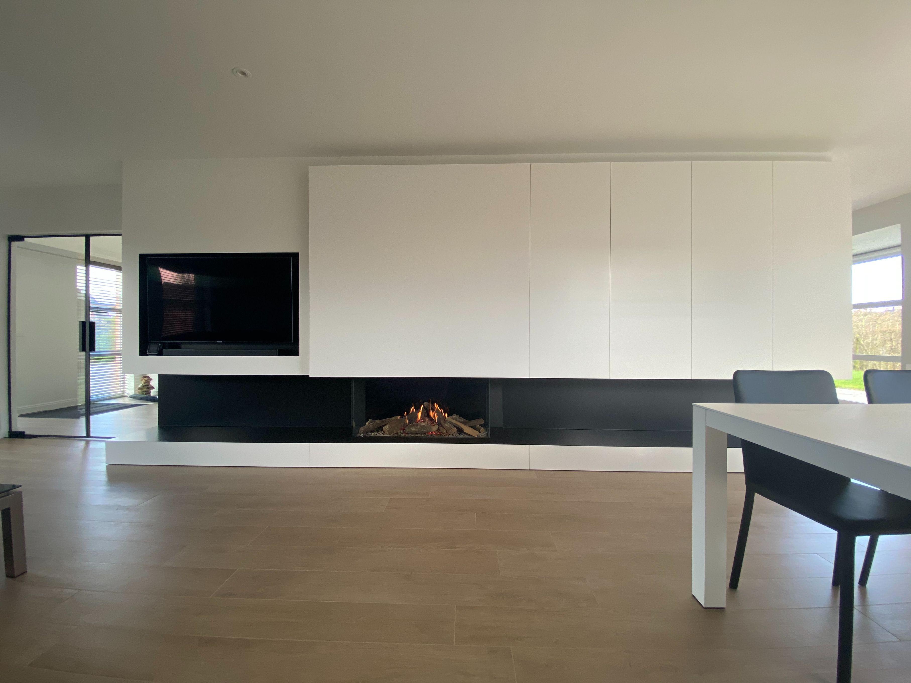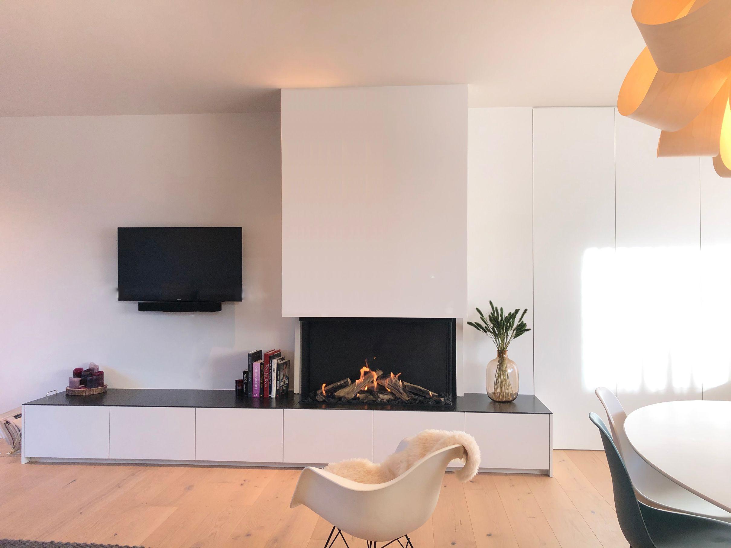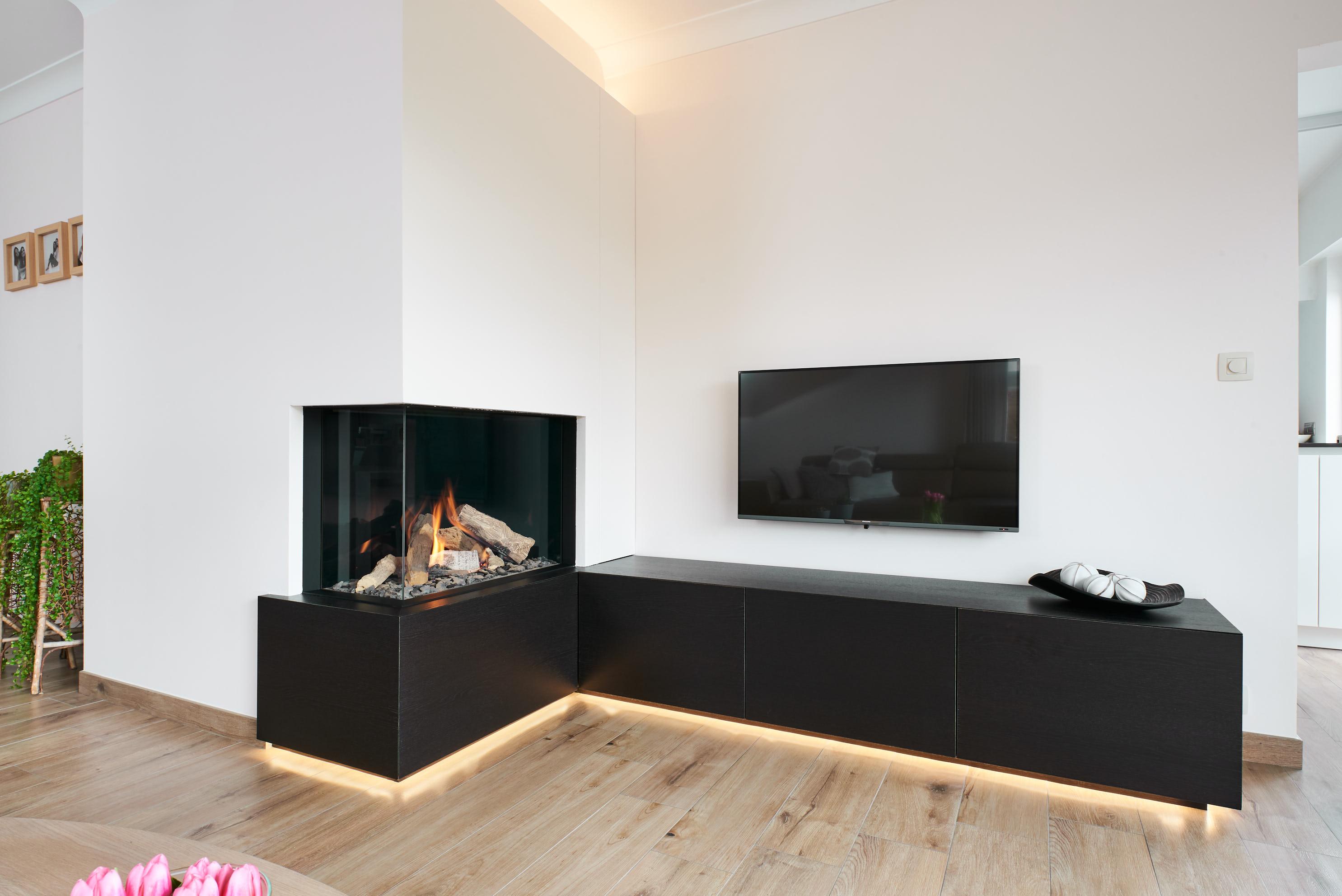 In dit geval gaat het echter om een haard die een hoek in de muur integraal vervangt.