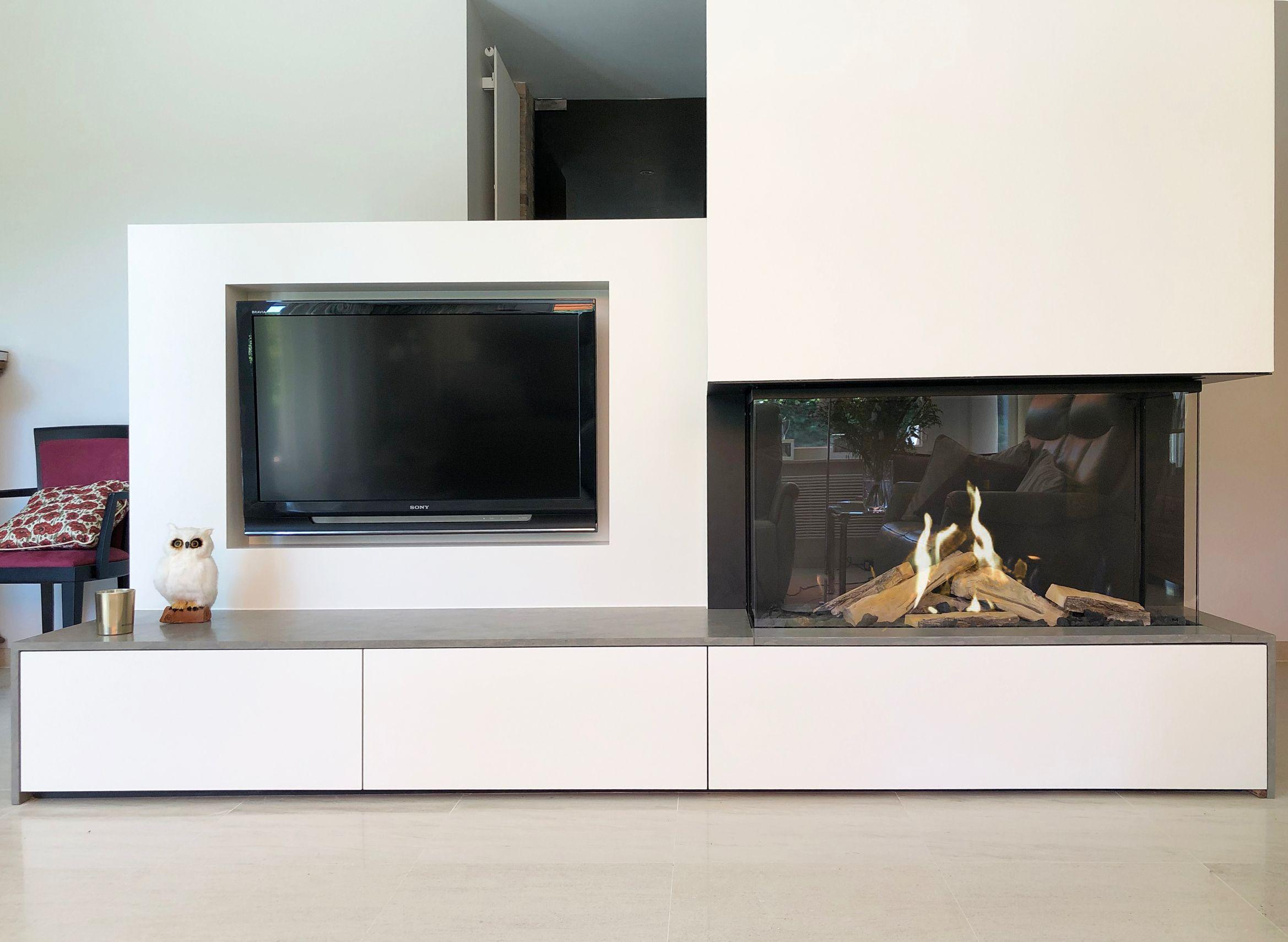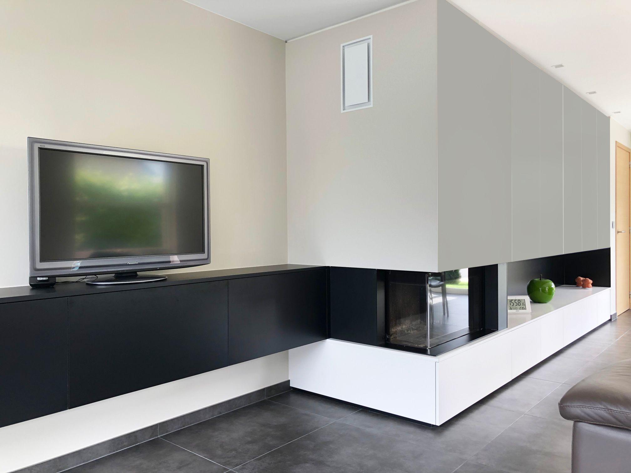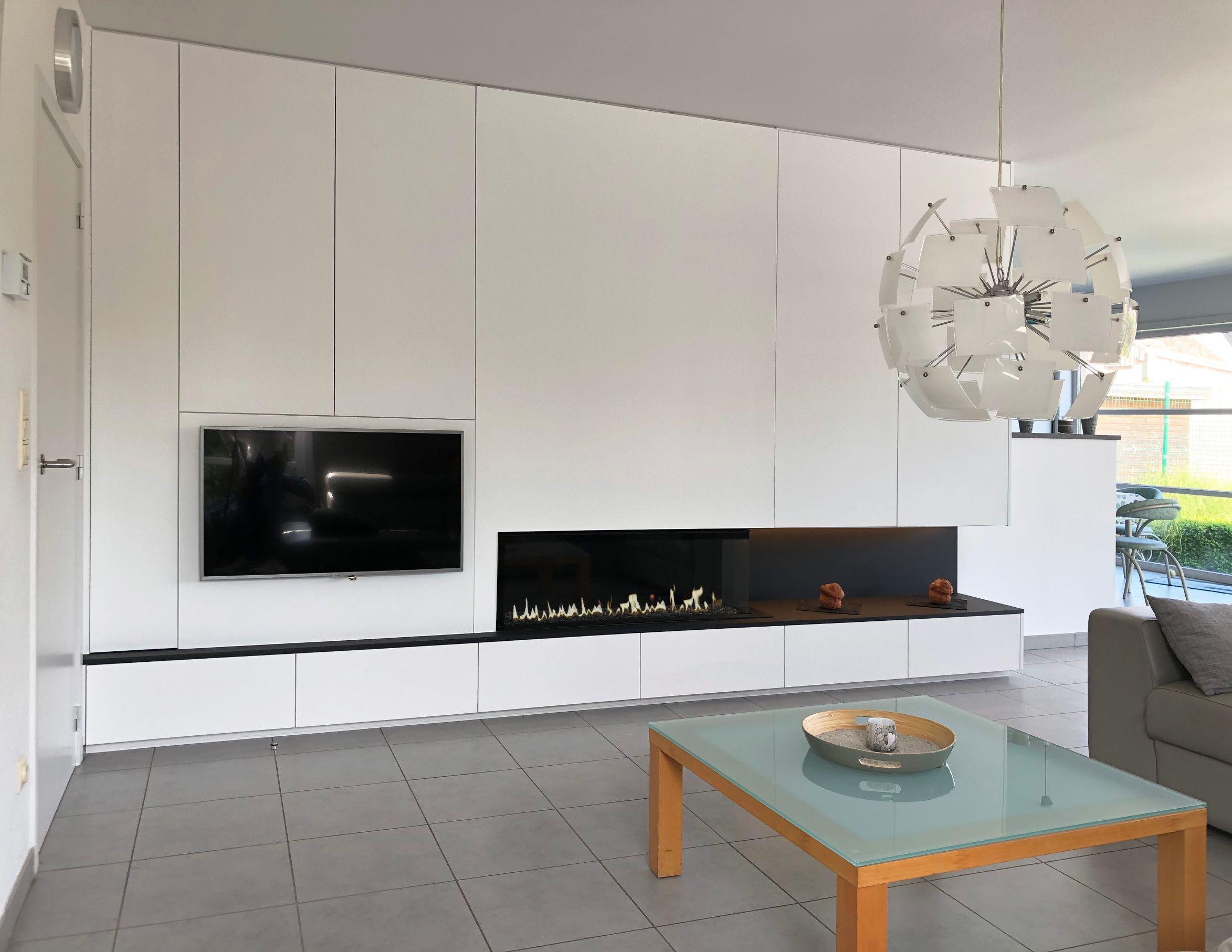 In dit geval gaat het echter om een haard die een hoek in de muur integraal vervangt.