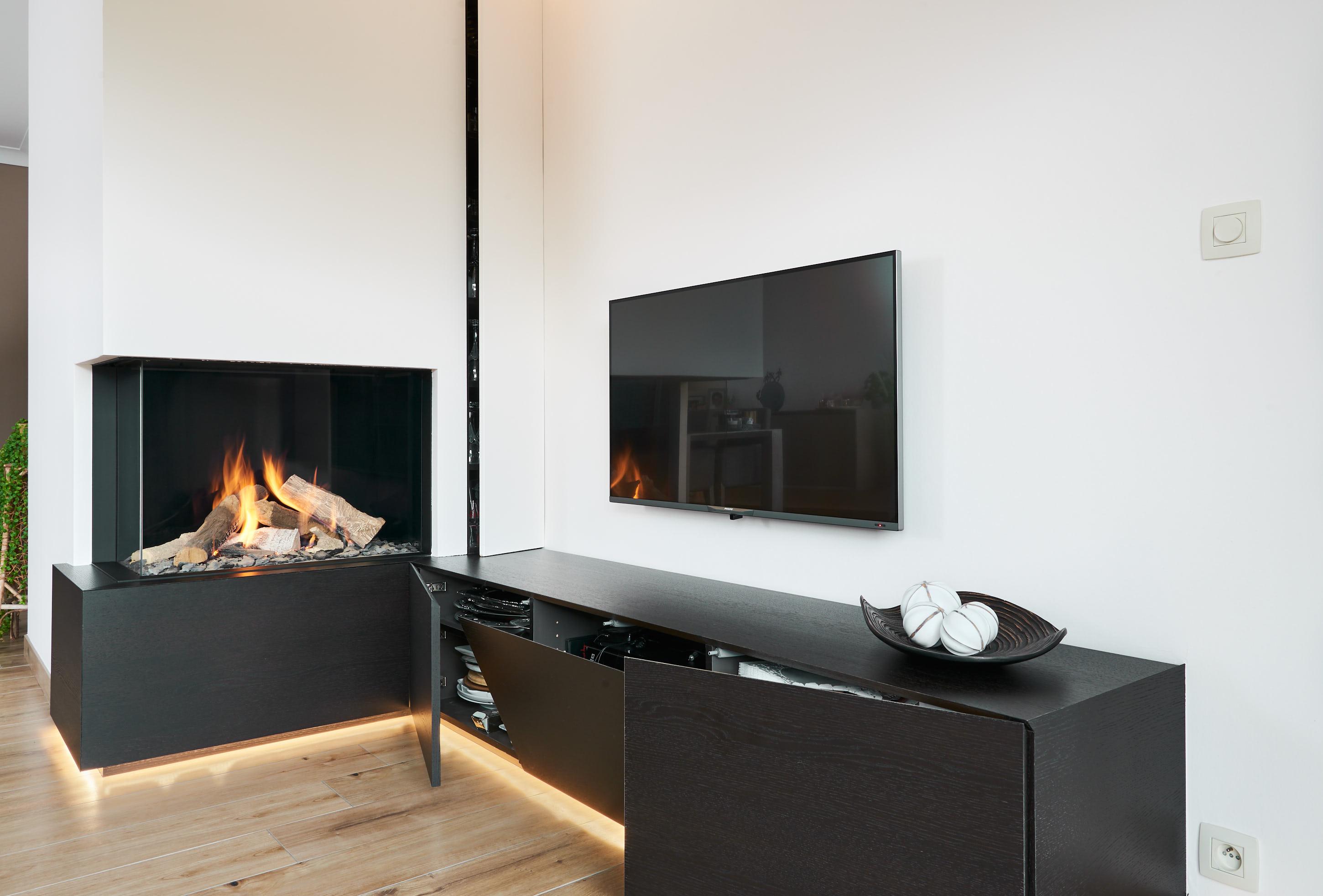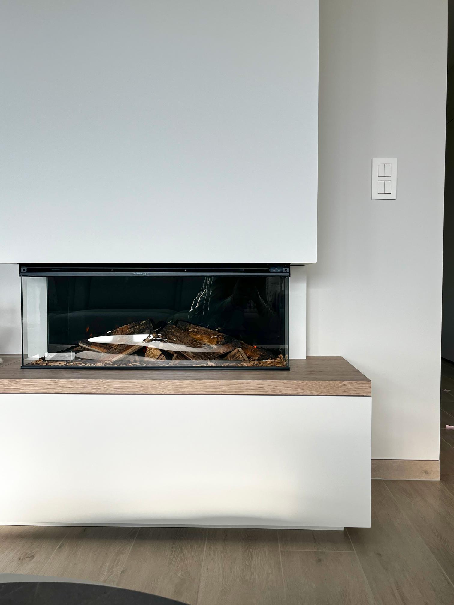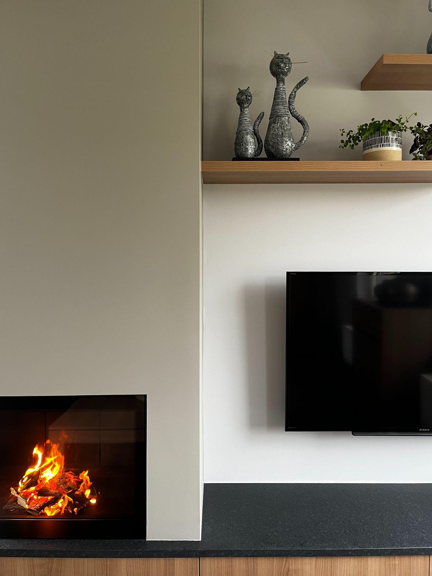 In dit geval gaat het echter om een haard die een hoek in de muur integraal vervangt.