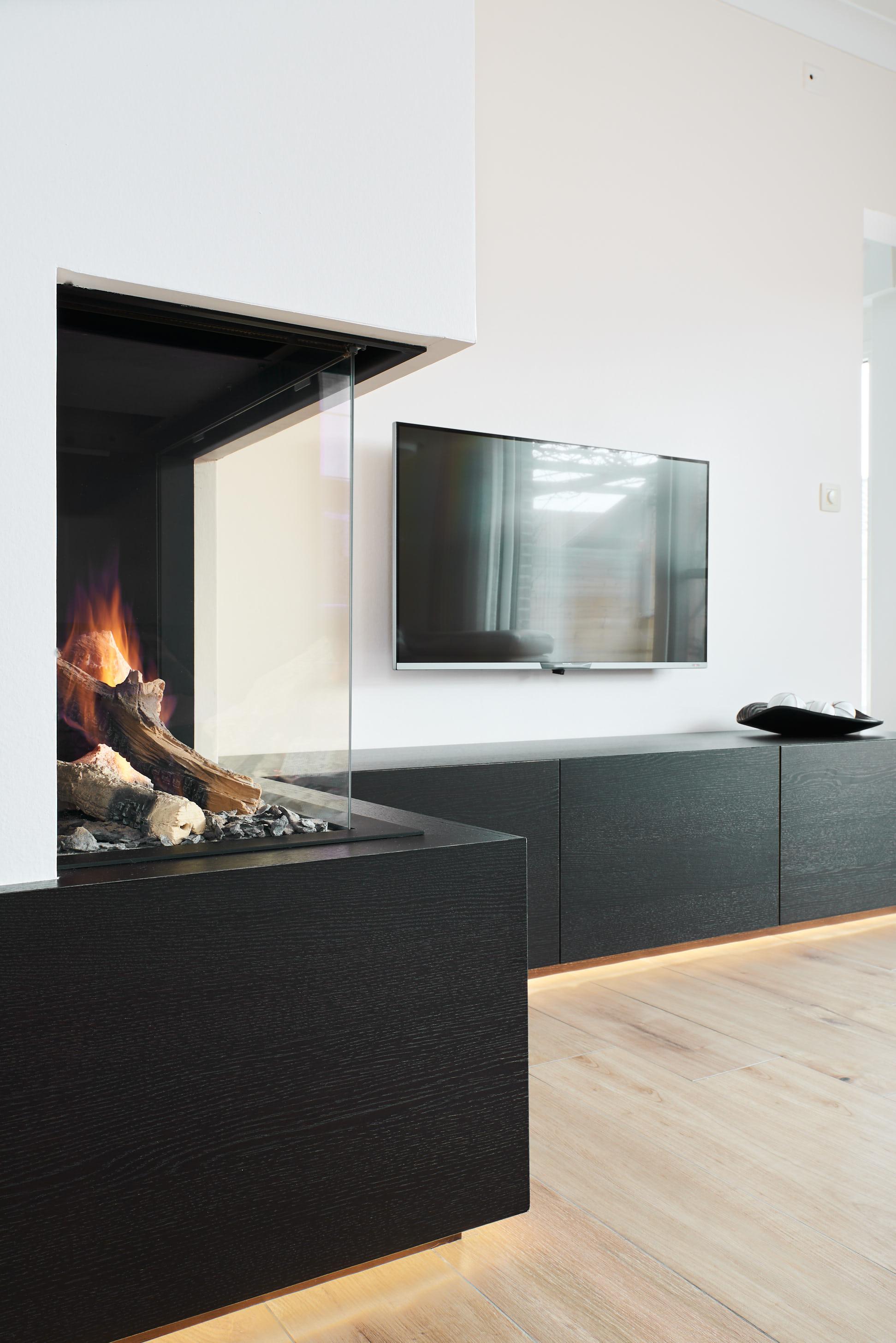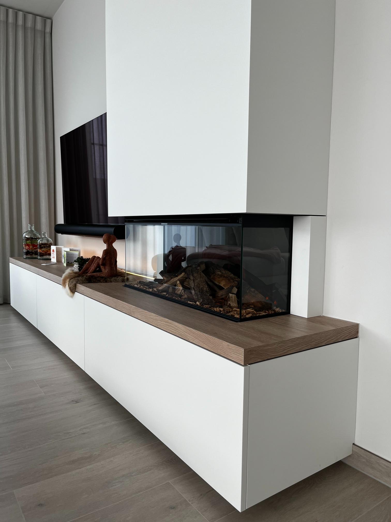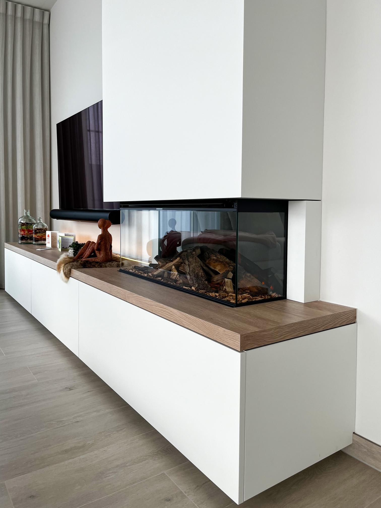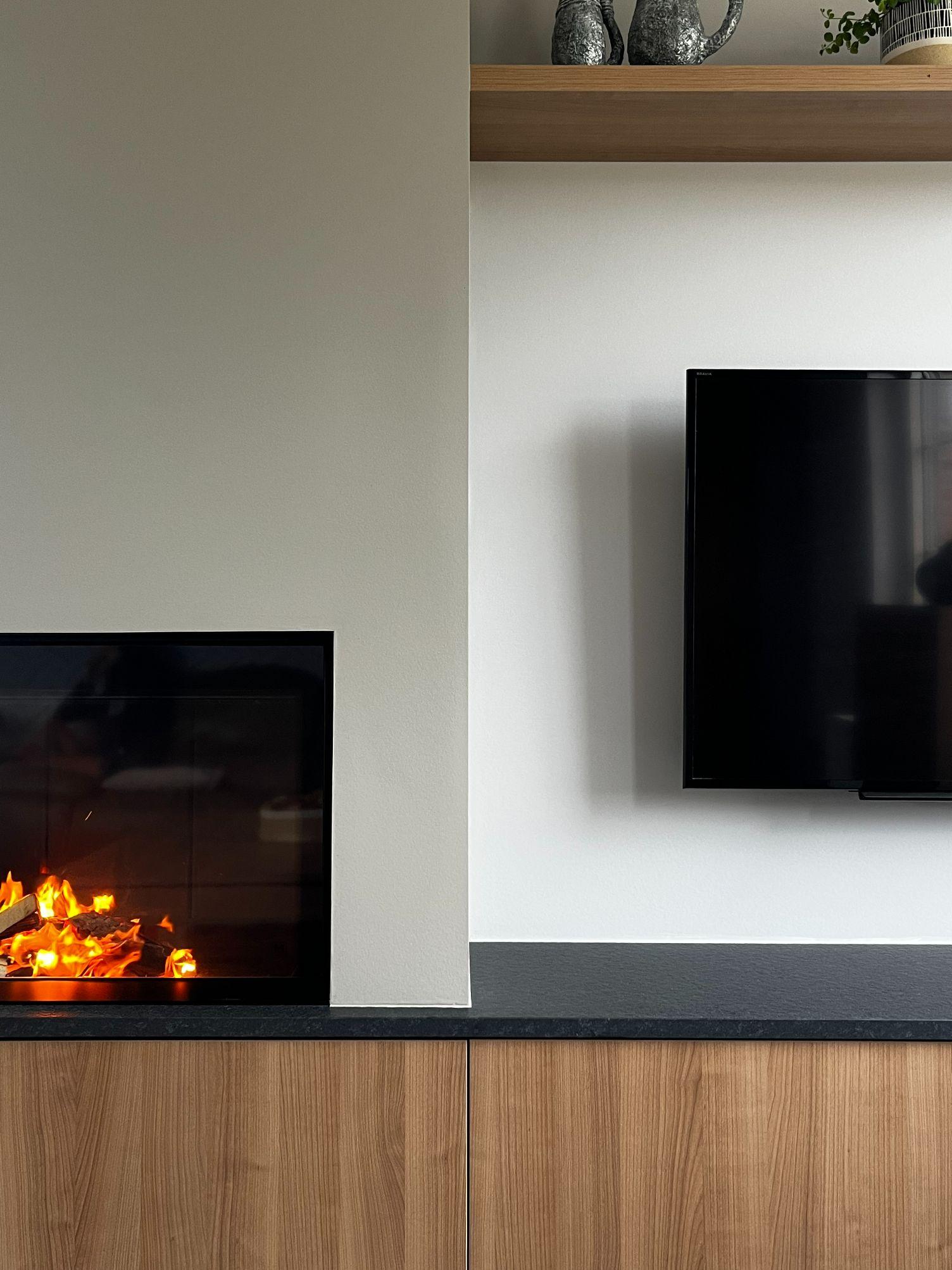 In dit geval gaat het echter om een haard die een hoek in de muur integraal vervangt.