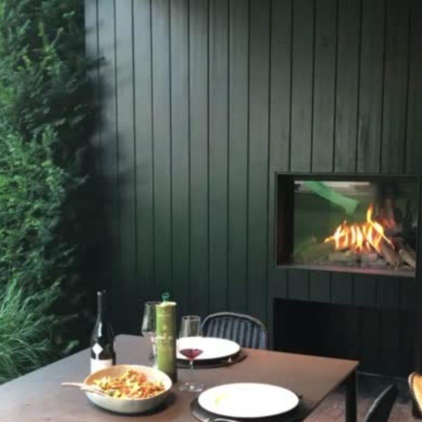 Een open haard buiten inbouwen is nu echt wel dè trend.