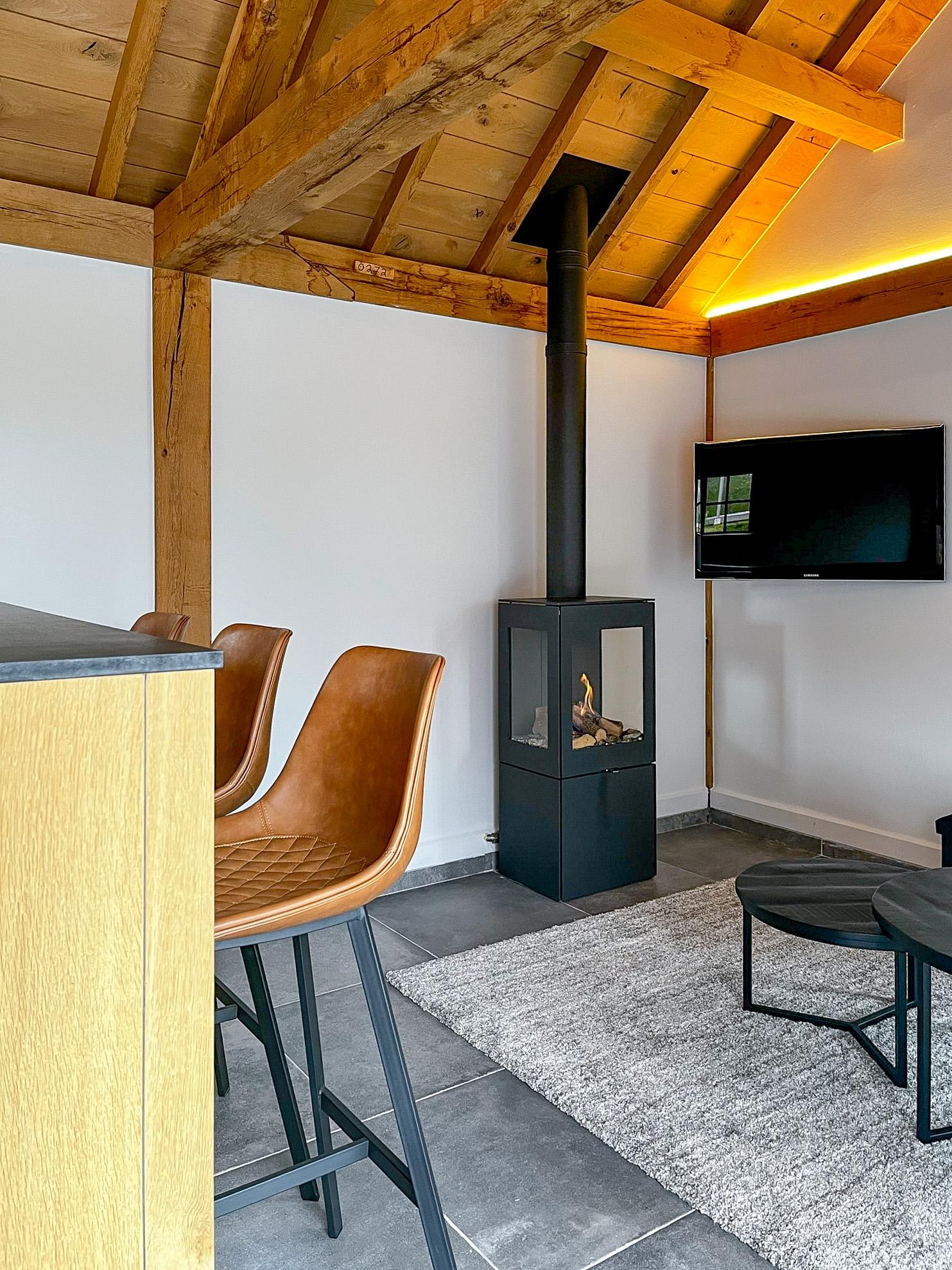 Niet enkel sfeerhaarden buiten, ook in de tuinkamers worden de tuinhaarden geplaatst.