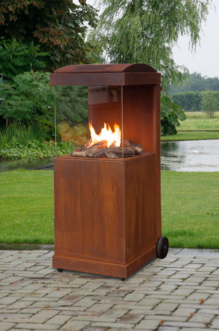 De buitenkachels hiernaast zijn de gashaard tuin mobiel van Faber en tuinhaard cortenstaal, beiden verplaatsbaar en met flesgas. Je rijdt je tuinhaard letterlijk in de tuin.
