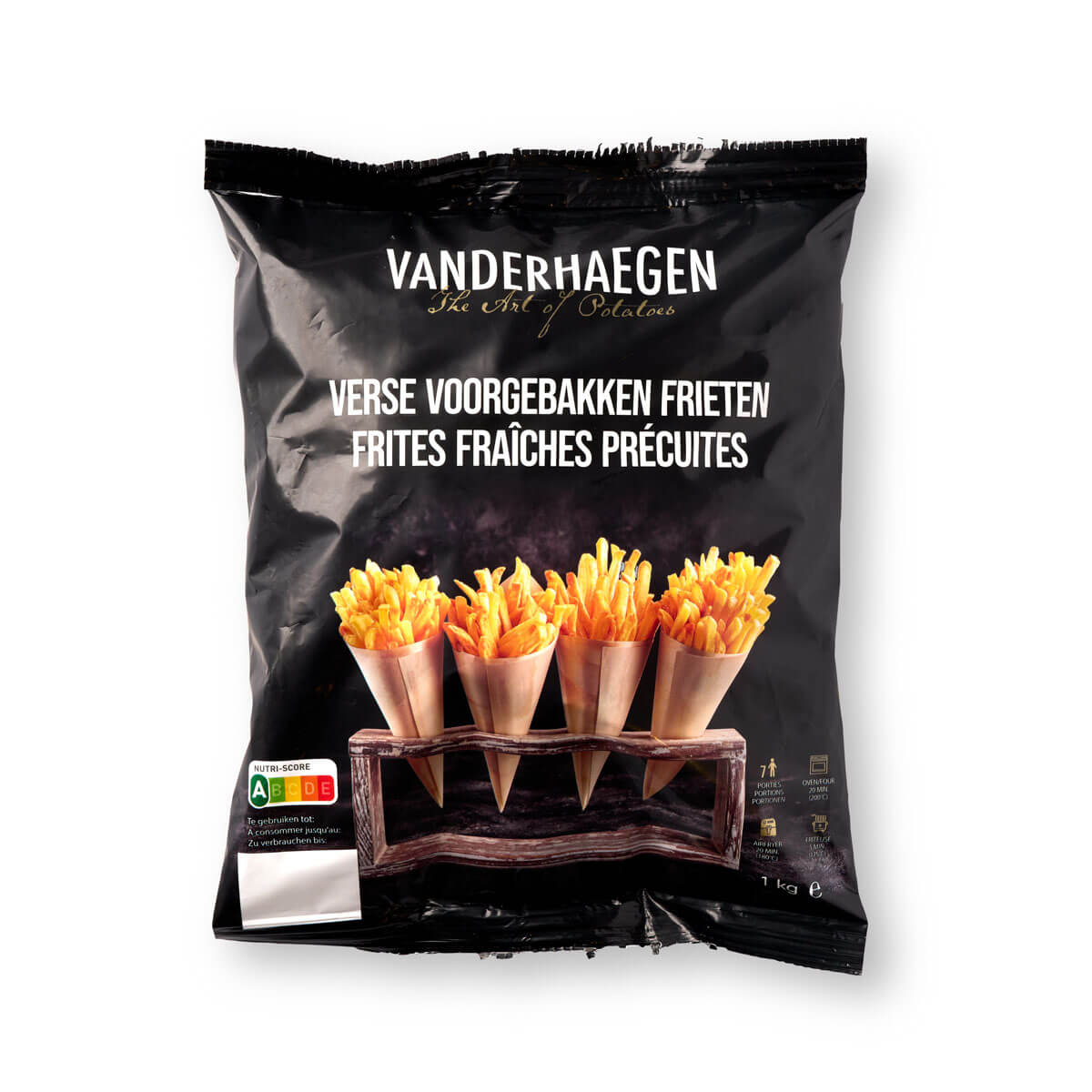 Onze frieten hebben een natuurlijke goudgele kleur en een lichte, krokante beet. Dankzij de verpakking onder beschermde atmosfeer blijft die versheid optimaal bewaard tot in de frituur.