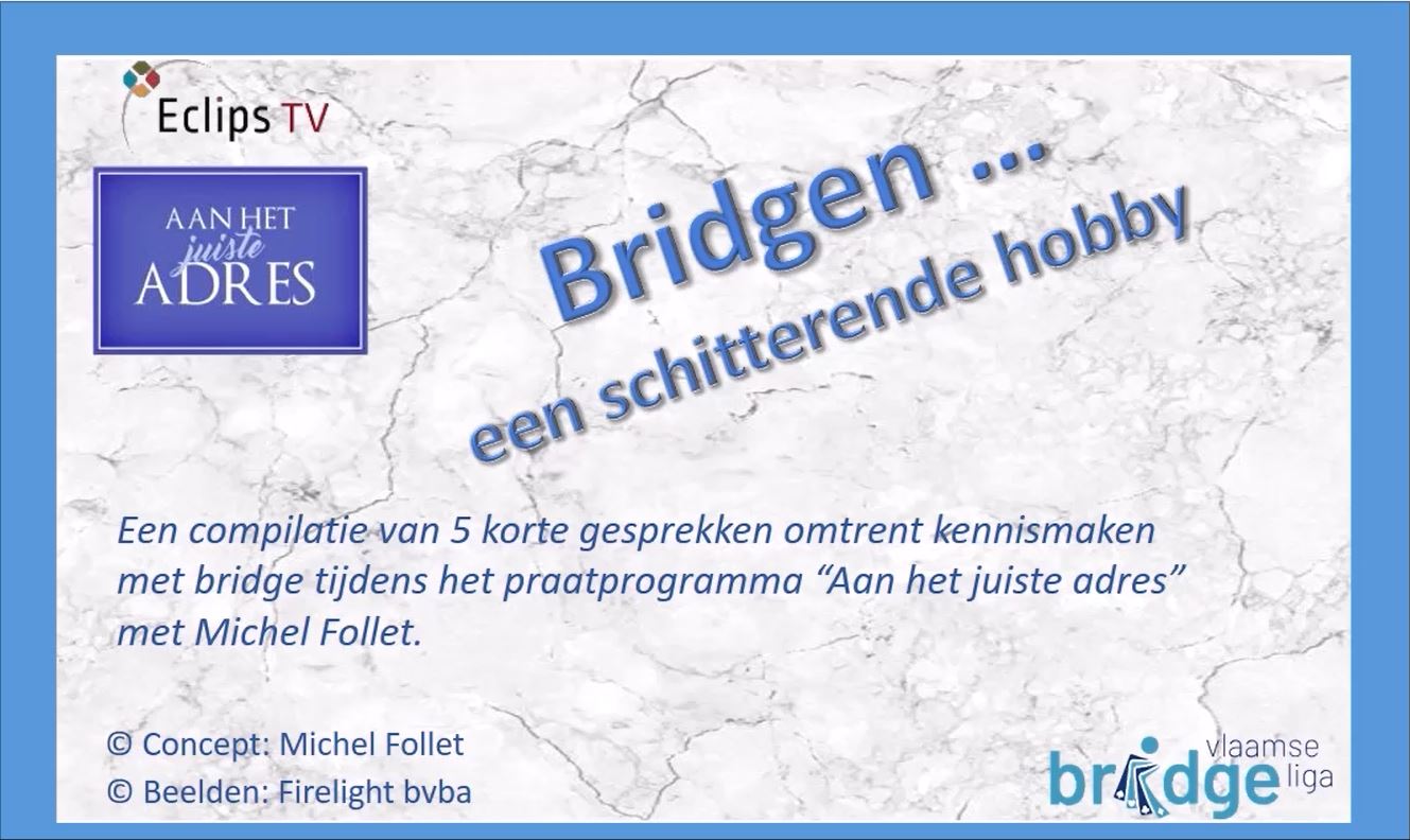 Bridge brengt je in een sfeer van unieke symbiose tussen spanning en ontspanning… zoals je enkel bij het bridgen kan ervaren. Iets wat je alleen als speler écht kan voelen en beleven. Iets wat niet met woorden te beschrijven is… Je moet het beleven…