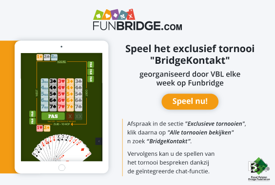 Elke week gaat het BridgeKontakt-tornooi op Funbridge door.