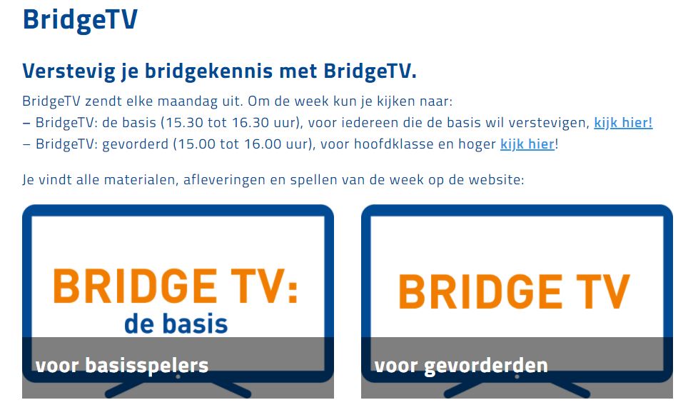 In maart 2020 is de Nederlandse Bridge Bond begonnen met een wekelijkse TV serie over bridge.