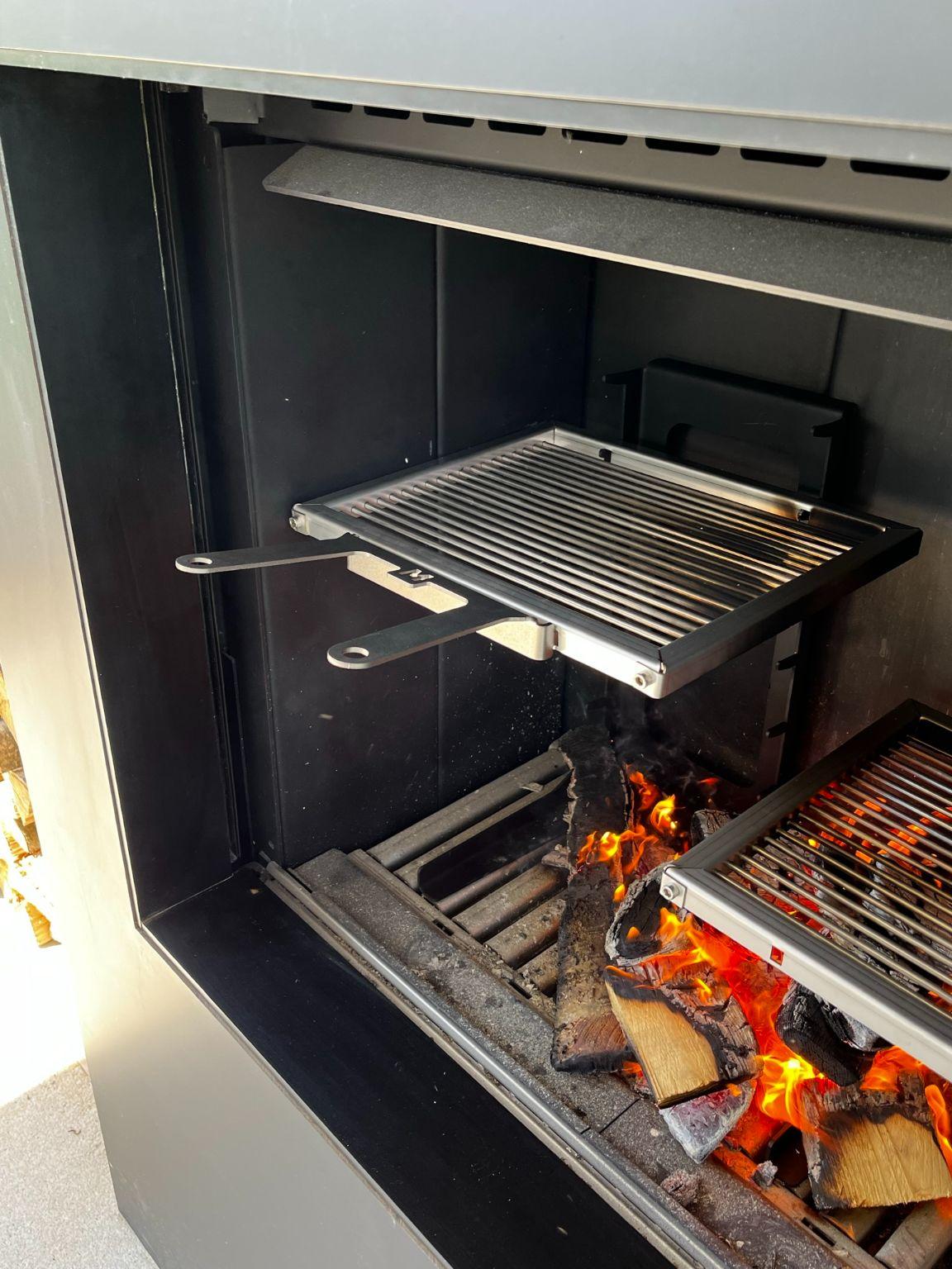 - Deze haard beschikt over twee robuuste BBQ-roosters met handige grip die in hoogte verstelbaar zijn.