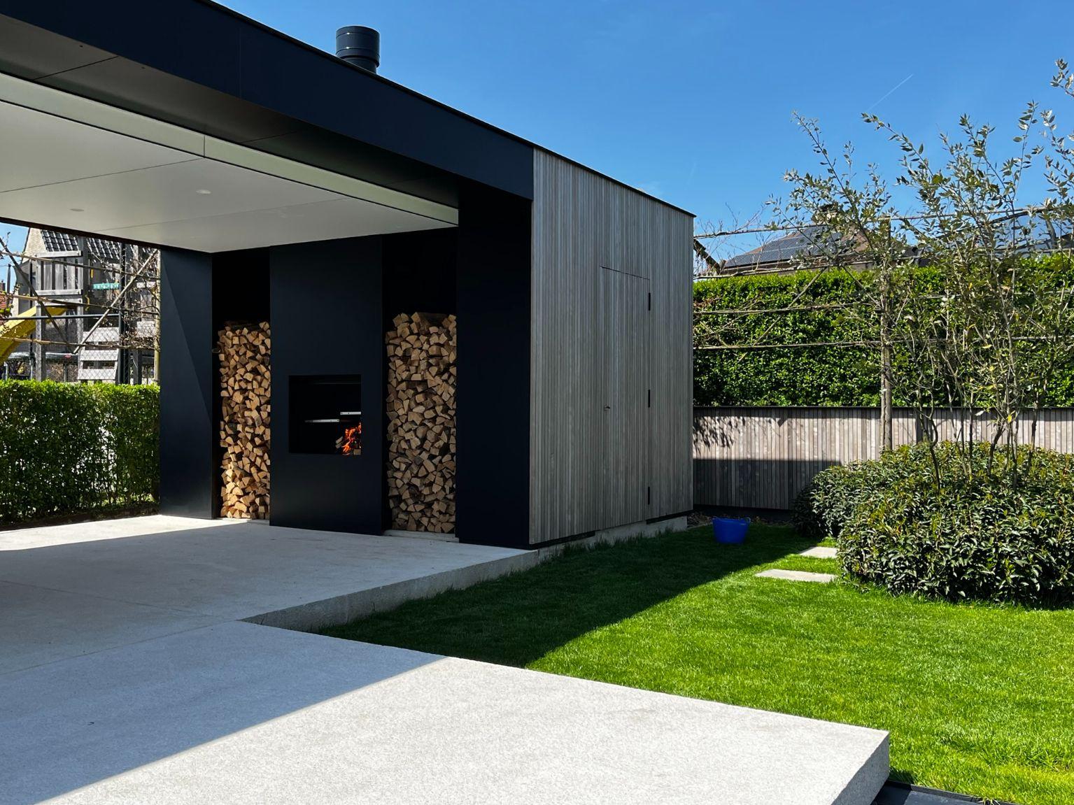 - Mogelijkheid om een praktische haardwand te installeren waar je meteen al je BBQ-spullen in kwijt kan.