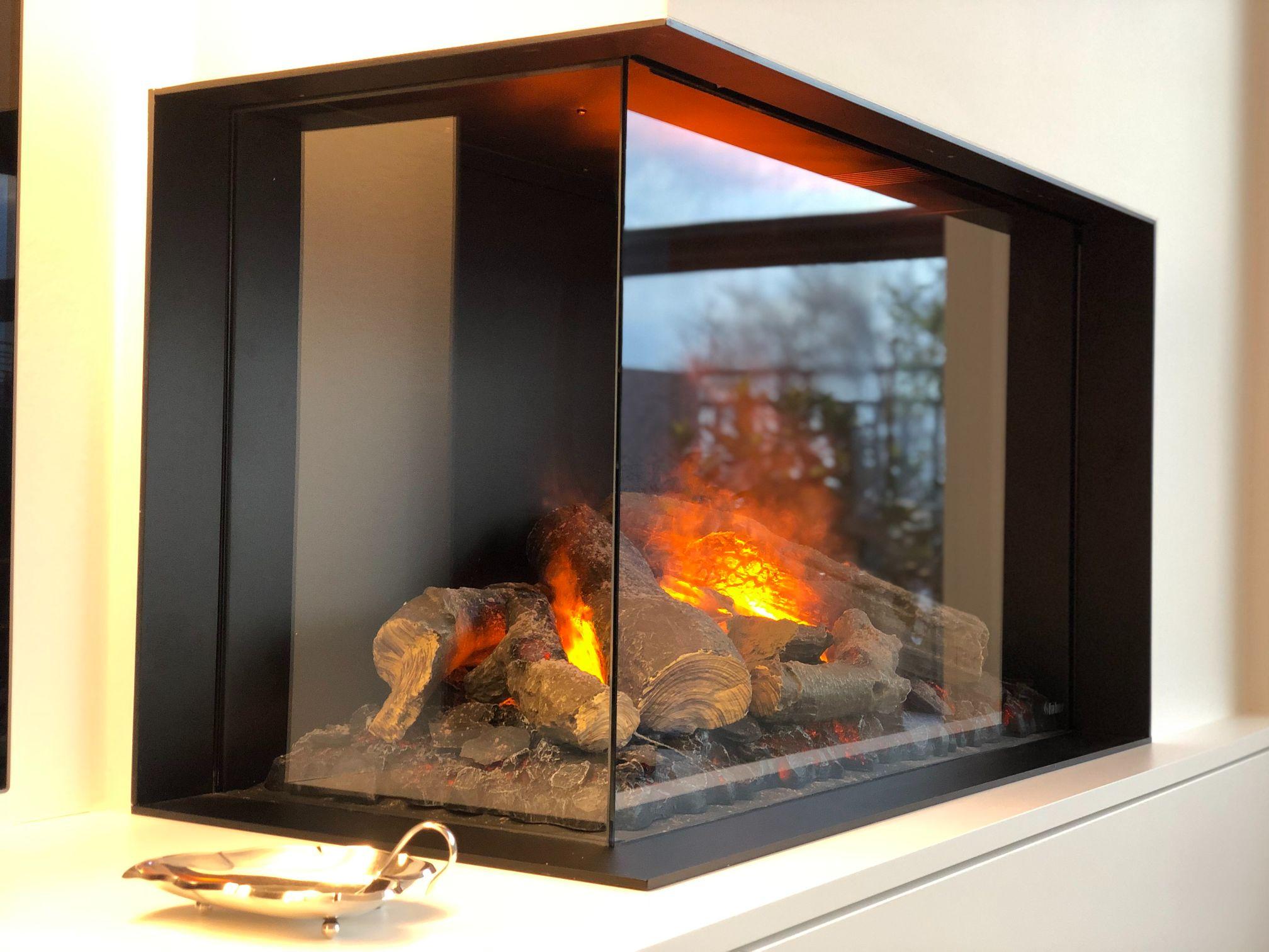 Wil je je elektrische haard inbouw niet al te log maken? Dan is de driezijdige elektrische haard perfect. De LED sfeerhaard van Dru is een voorbeeld van zo’n driezijdige elektrische haard. Ook de Faber E matrix en British Fires heeft een driezijdige haard in hun aanbod.