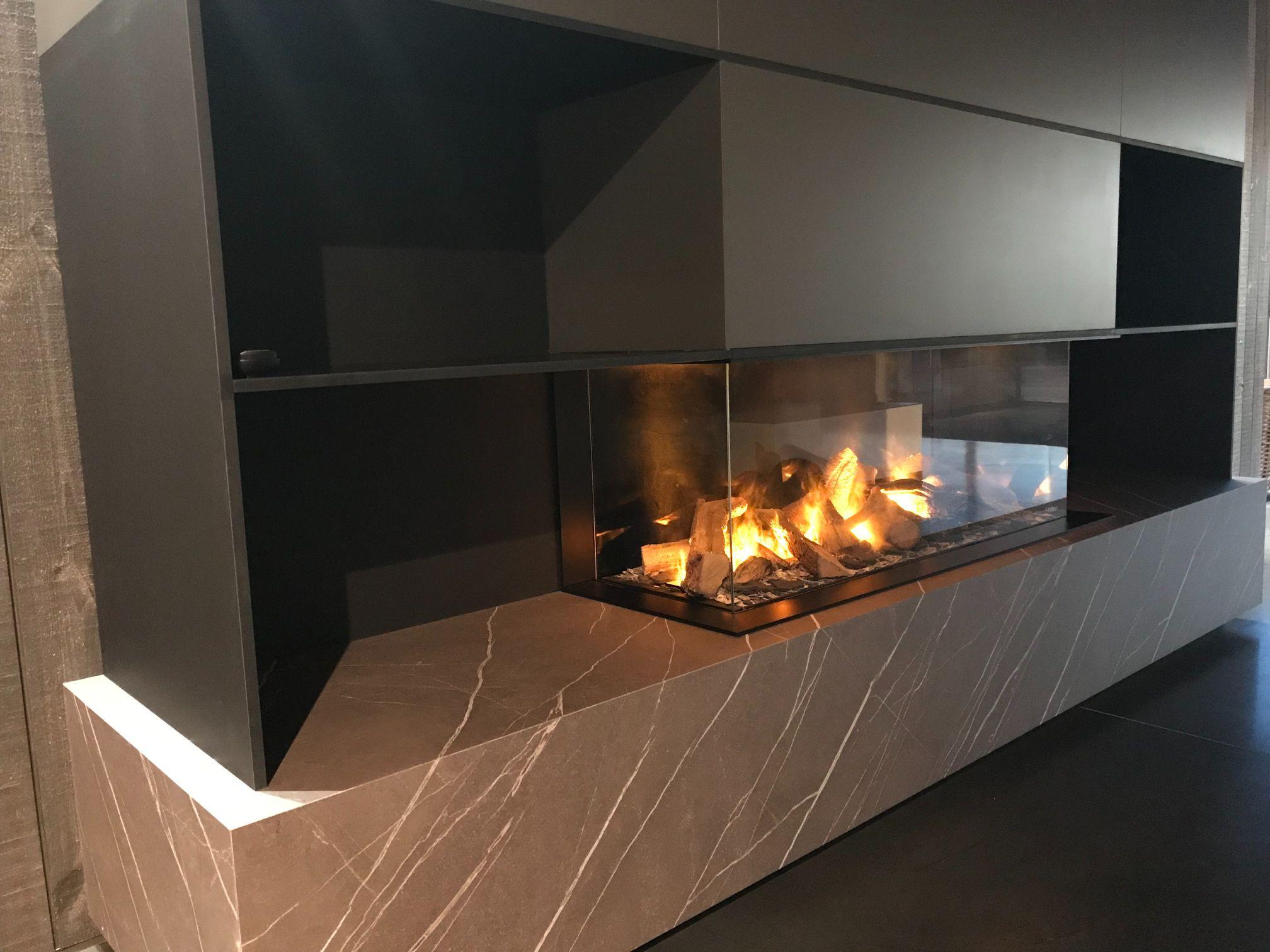 Hiernaast de elektrische haard hoek opstelling van Faber, E MatriX 800 500 II