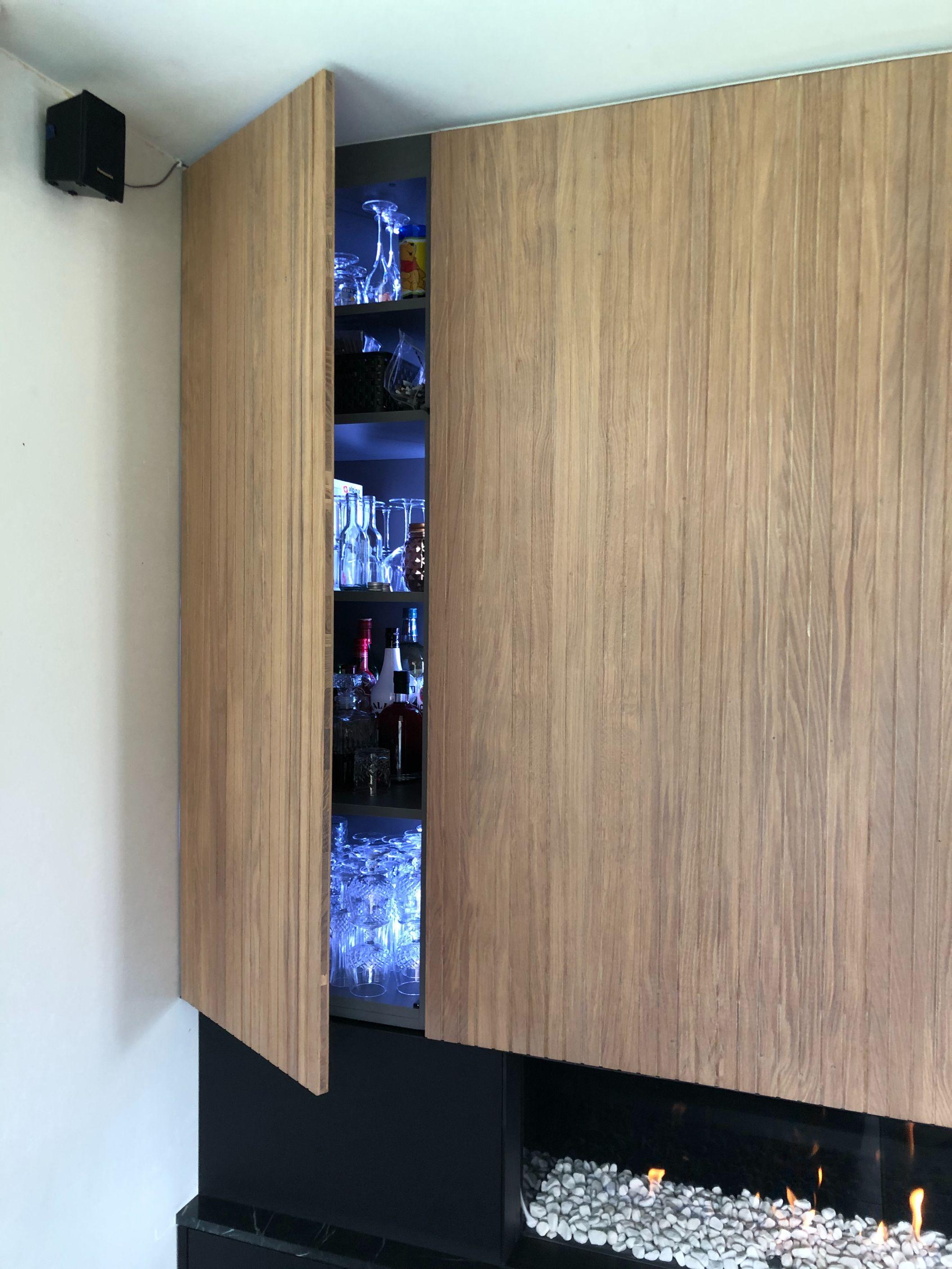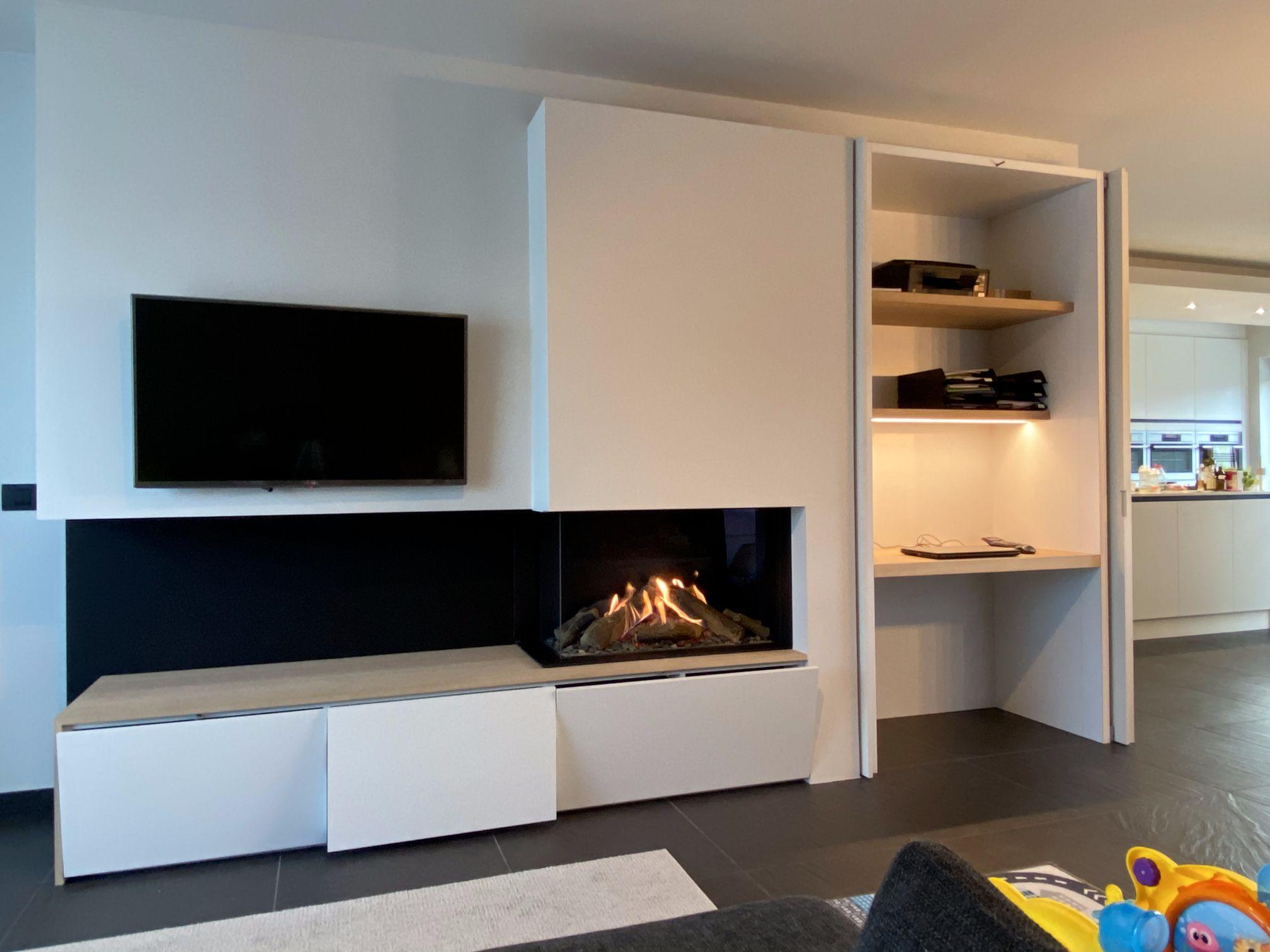 De positie van de haard in de ruimte heeft een impact op het creëren van de haardwand. Eens de juiste positie van de haard is gekend kan de haardwand worden vormgegeven. Het wandmeubel met haard kan nu verder worden opgebouwd in functie van de wensen van de klant. Wil je een praktische, functionele haardwand, wil je een decoratieve haardwand, ... Alles kan, je noden worden samen besproken.