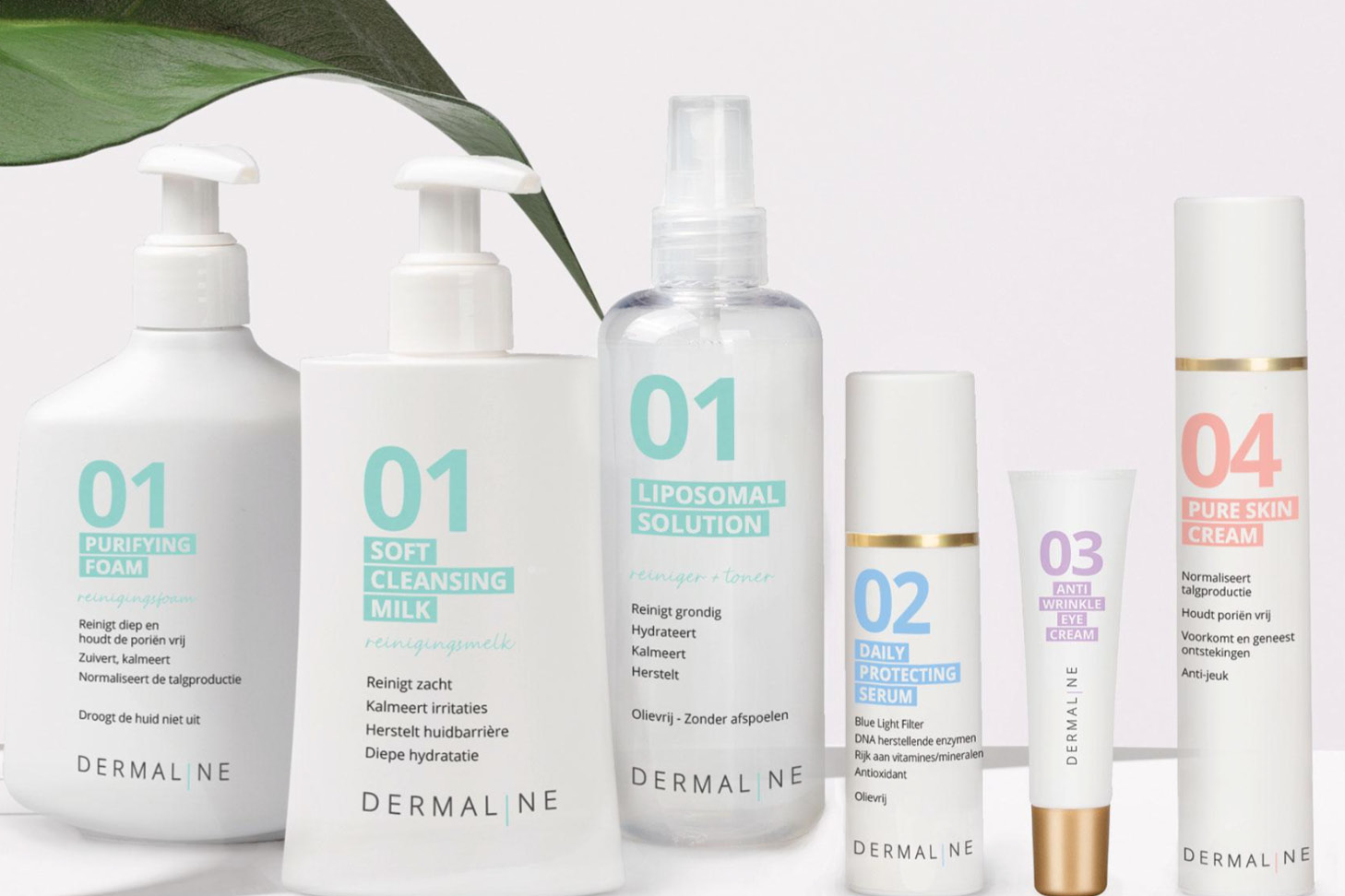 Dermaline is een totaalconcept waarmee we huidveroudering willen aanpakken. De producten hebben effect op de huid in zijn totaliteit en behandelen resultaatgericht alle verschijnselen van veroudering. Denk aan het zichtbaar verminderen en voorkomen van pigmentvlekken, verslapping, fijne lijntjes en rimpels. De producten herstellen de huid, maken ze sterker en pakken onzuiverheden aan.