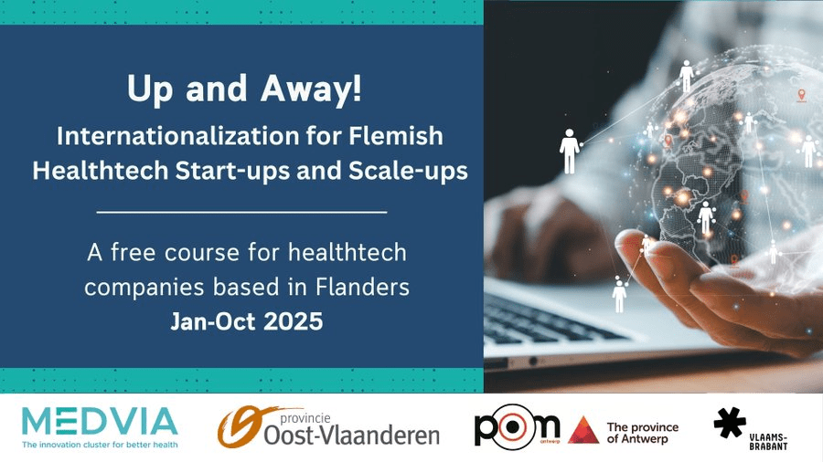 POM Antwerpen, together with Provincie Antwerpen, Provincie Vlaams-Brabant and Provincie Oost-Vlaanderen are organizing the 3rd edition of Up and Away, a internationalization course for healthtech companies. We are partnering with MEDVIA to help us organize this course.