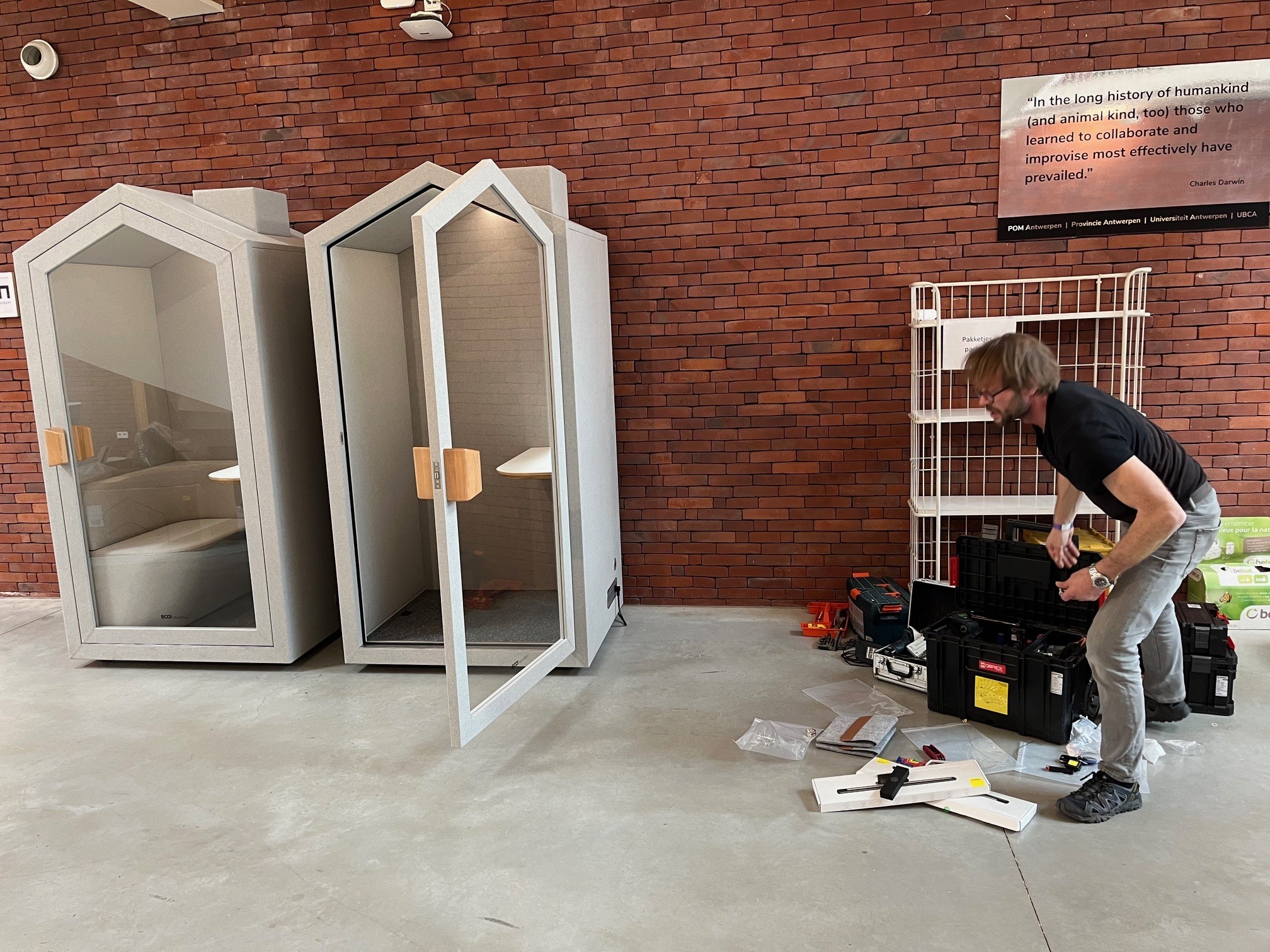 Even in alle rust een vertrouwelijk telefoongesprek afhandelen of online vergaderen zonder storend achtergrondgeluid? Dat kan vanaf nu in de twee vergaderboxen nabij de inkombalie van Incubator Darwin op het Wetenschapspark UAntwerpen. Een mooie uitbreiding op het vergaderaanbod.